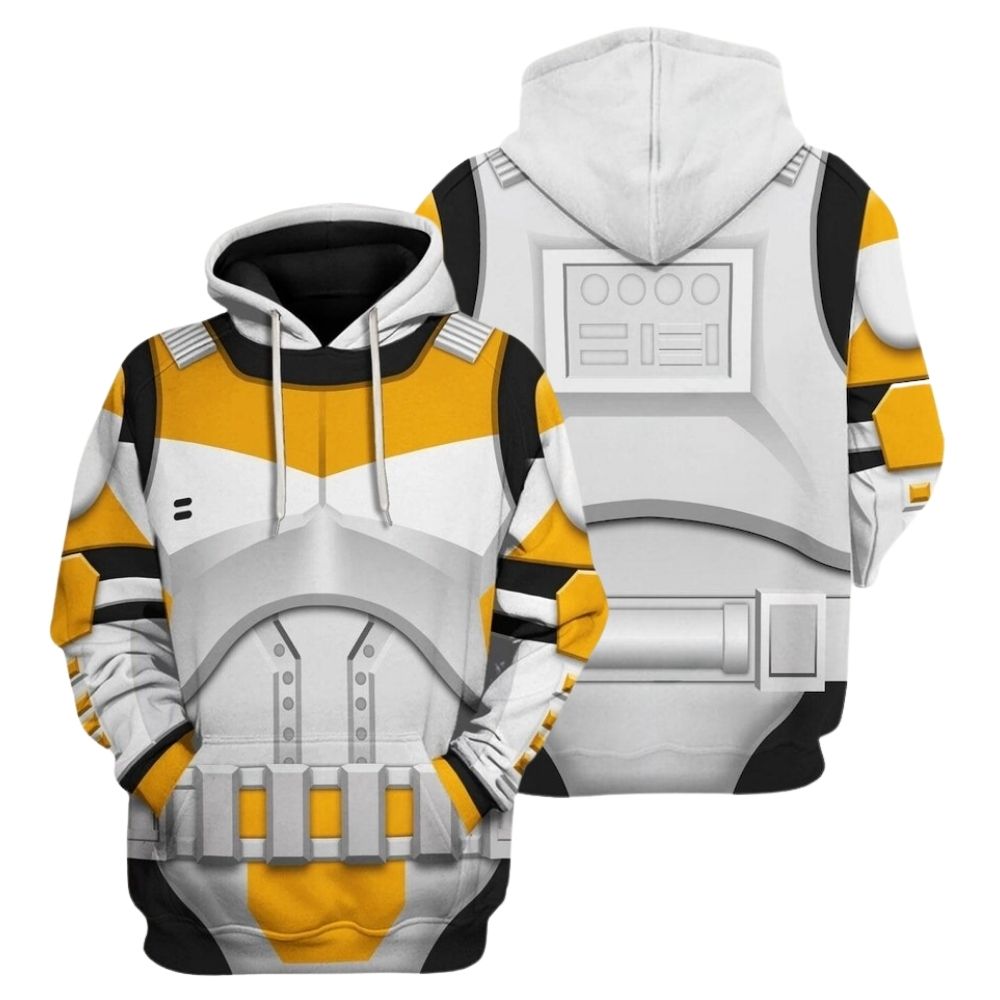 Get ready to join the 212th Attack Battalion with this striking All Over Print Hoodie. Perfect for cosplay or everyday wear, this hoodie is a must-have for any Star Wars fan. Stand out from the crowd and show off your love for the galaxy far, far away with this unique and eye-catching design.