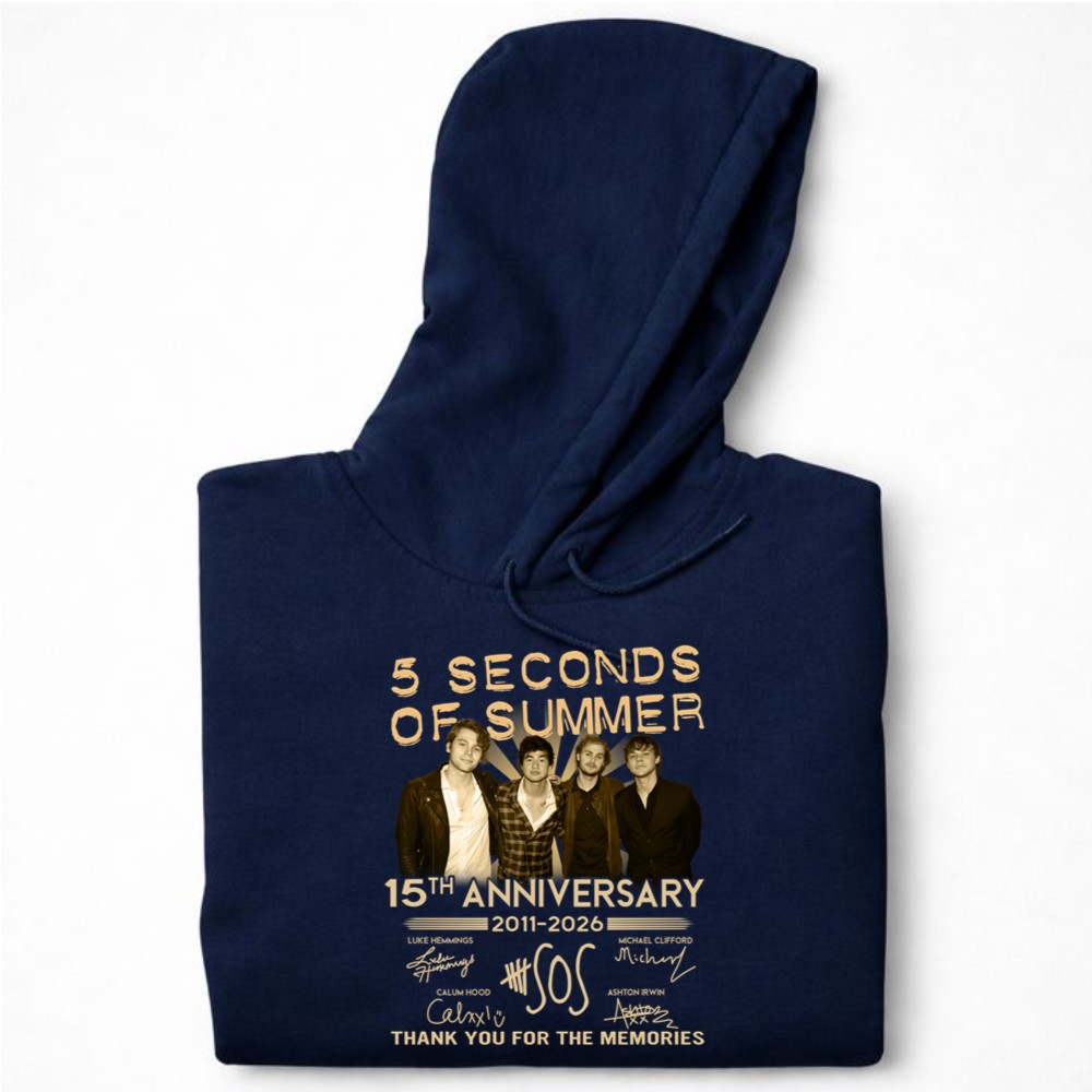 5 Seconds of Summer anniversary shirt, music fan tribute, band memorabilia, thank you for the memories, pop rock legacy, concert merchandise, fan culture apparel, premium cotton t-shirt