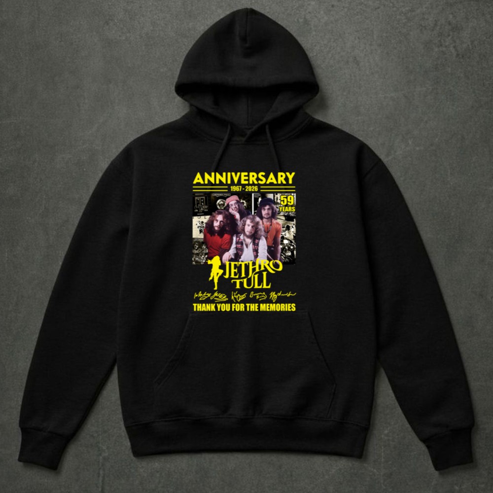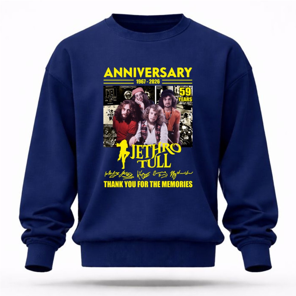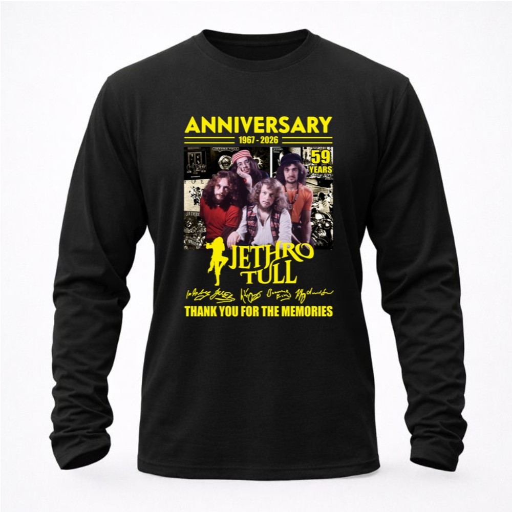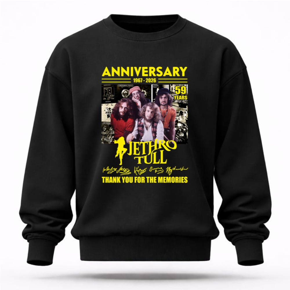 This design encapsulates the spirit of Jethro Tull’s remarkable journey through music. With bold typography and images of the band members, it serves as a heartfelt thank you to fans who have cherished their music for nearly six decades, celebrating the memories and emotions tied to their iconic sound.