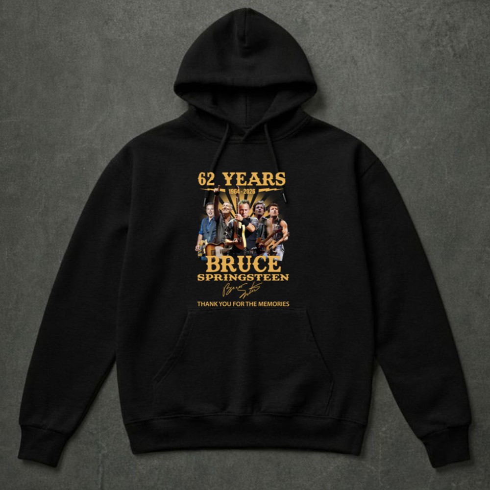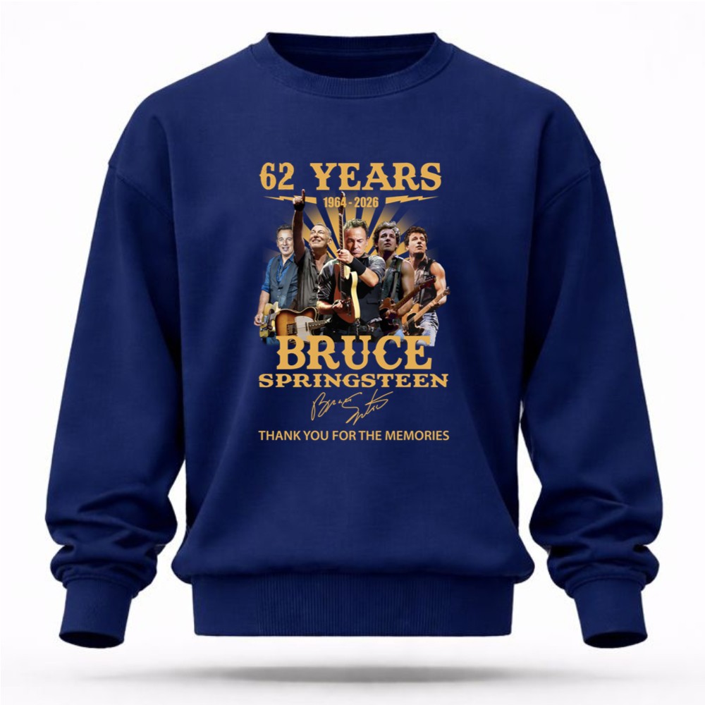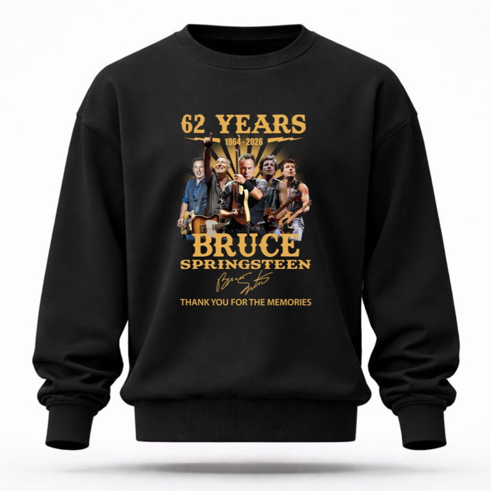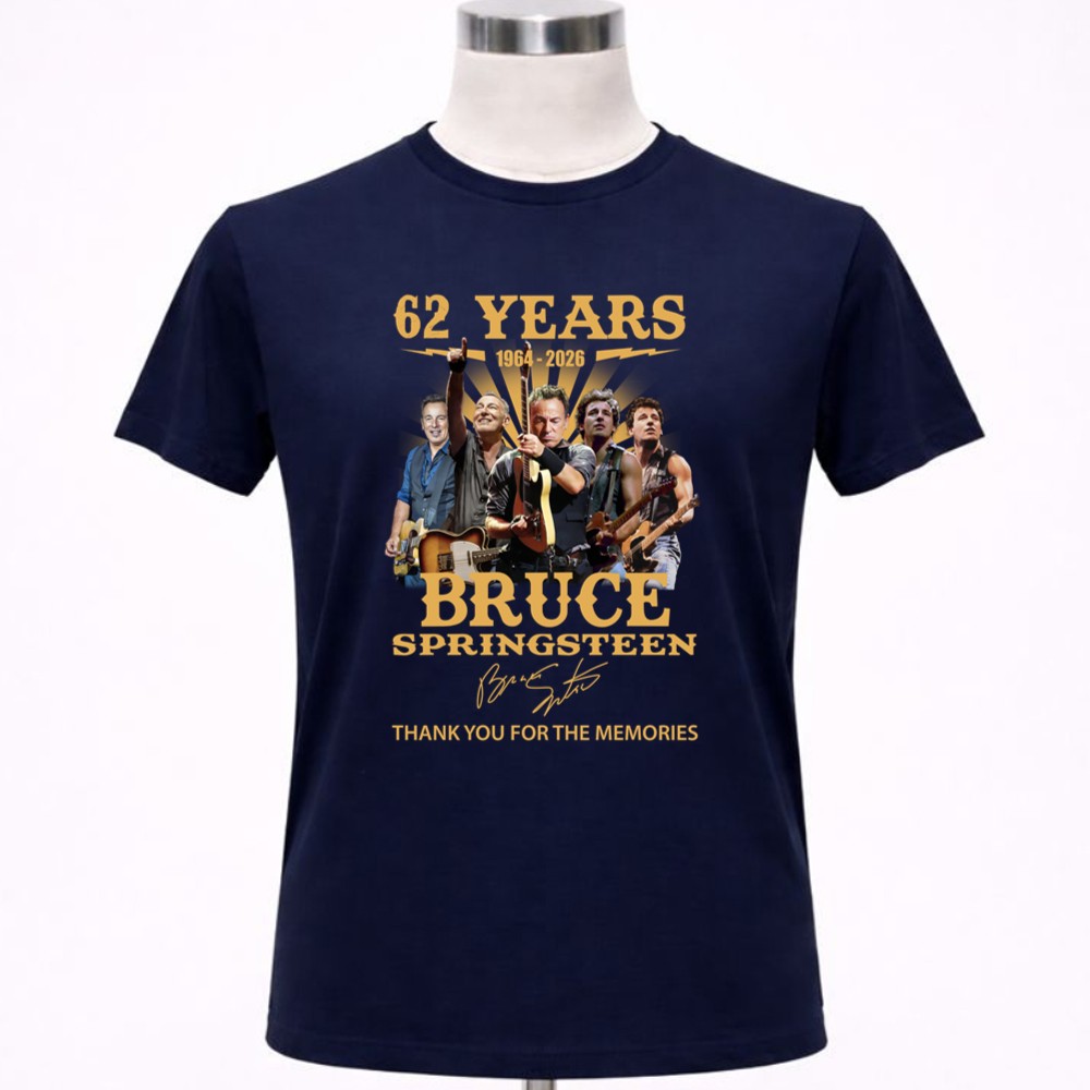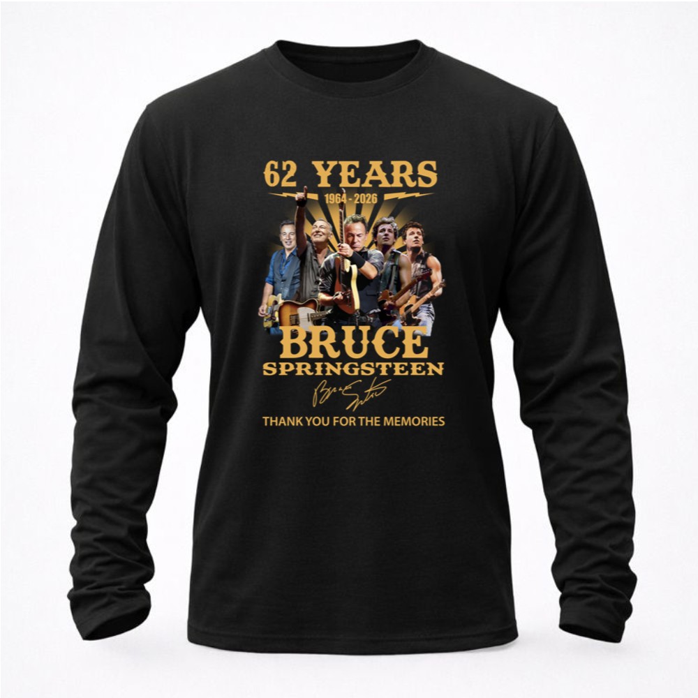 This design encapsulates the essence of Bruce Springsteen’s enduring legacy, featuring images of his legendary performances alongside his signature. It’s a celebration of 62 years filled with unforgettable music and memories, inviting fans to reminisce about the powerful impact he’s had on rock music and their lives.