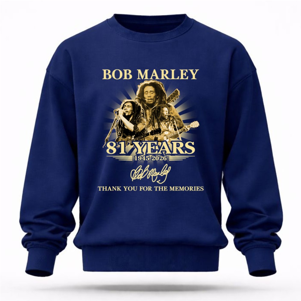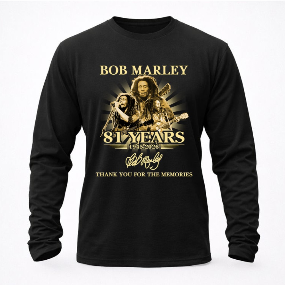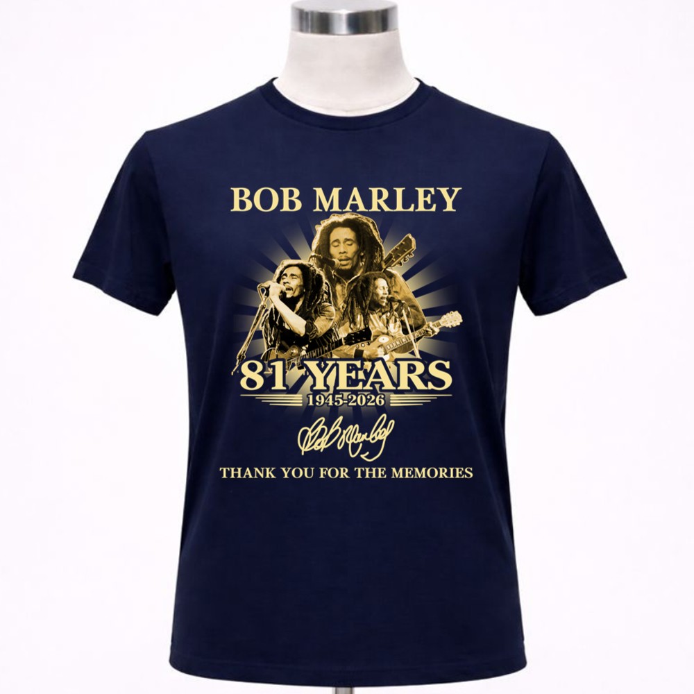 Bob Marley memorabilia, reggae music legend, 81st birthday tribute, iconic music art, classic rock apparel, music lover gift, reggae culture celebration, timeless memories