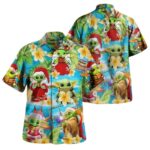 Celebrate the holiday season with a touch of Star Wars flair in this festive Yoda Hawaiian shirt. Perfect for Star Wars fans looking to add a unique twist to their Christmas wardrobe.