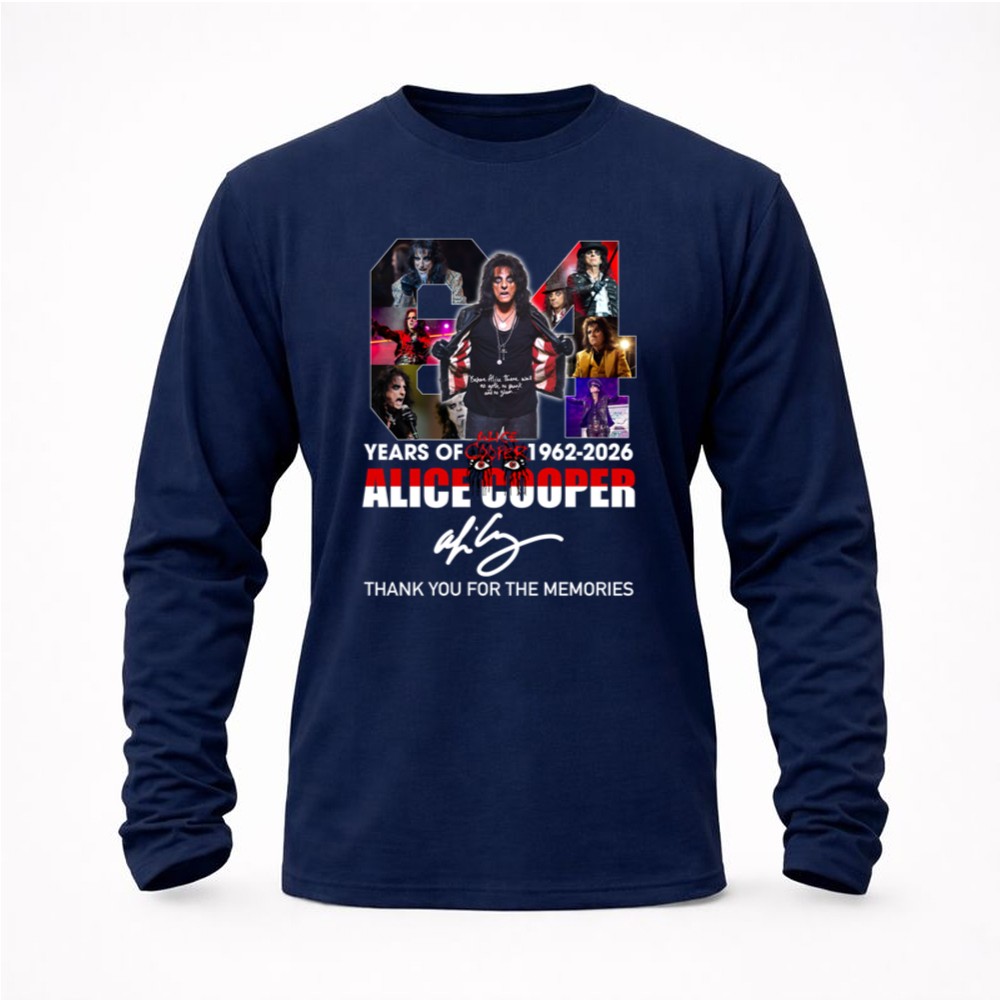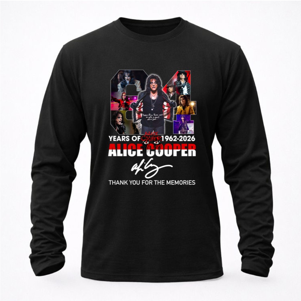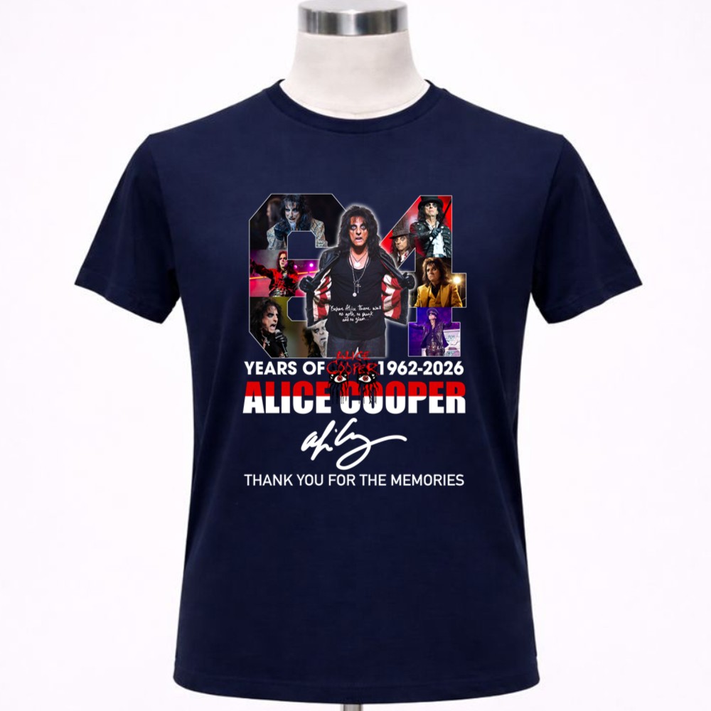 Alice Cooper tribute shirt, rock music legacy, 1962-2026 celebration, iconic rock moments, classic rock apparel, music lover's gift, concert memorabilia, nostalgic music tee