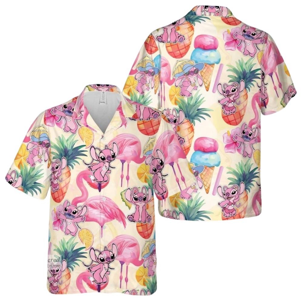 Elevate your summer style with this Angel Lilo And Stitch Floral And Ice Cream Hawaiian Shirt. Perfect for adding a touch of tropical flair to your wardrobe.