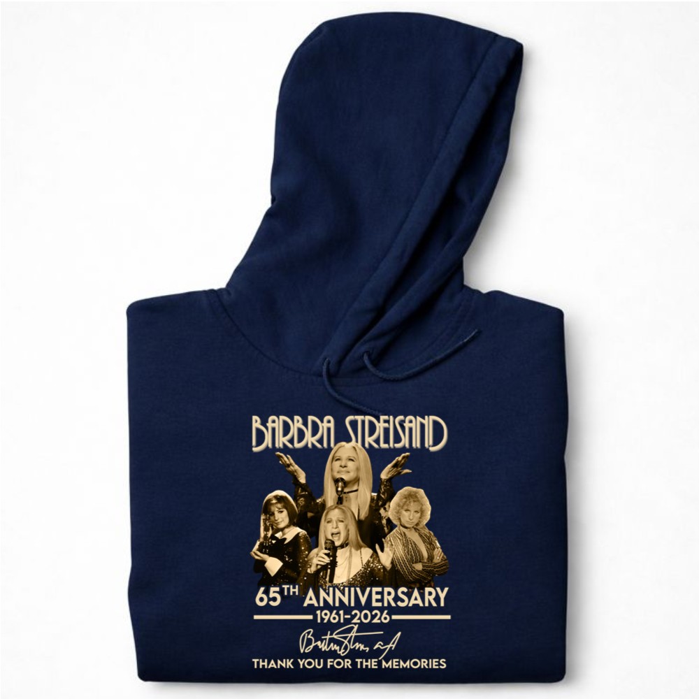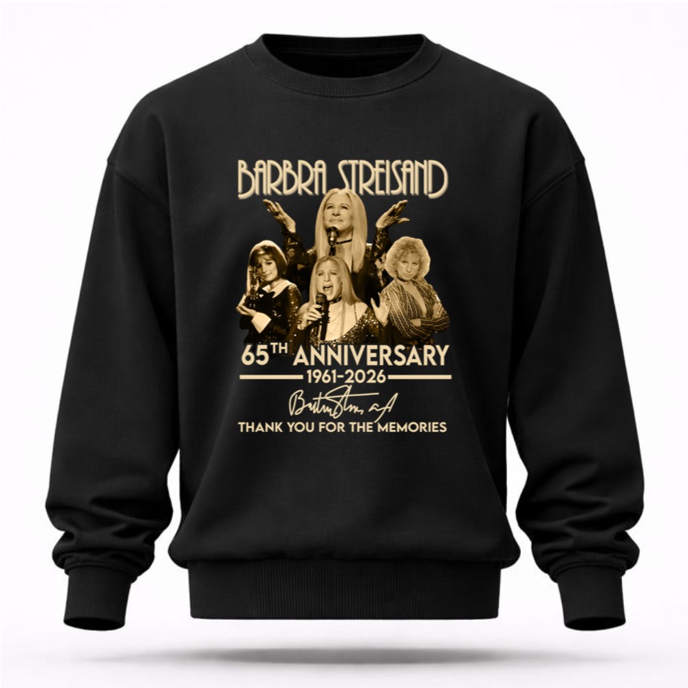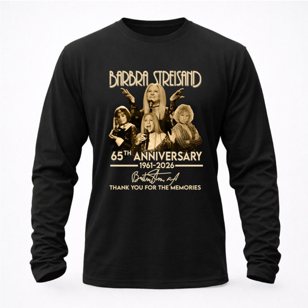 This design is a heartfelt tribute to Barbra Streisand’s extraordinary career, blending vintage elements with a modern touch. Featuring images from various eras, it encapsulates the joy and nostalgia of her performances, while the phrase ‘Thank You For The Memories’ serves as a reminder of the impact she has had on music lovers. This piece encourages fans to celebrate the moments that have shaped their lives through her art.