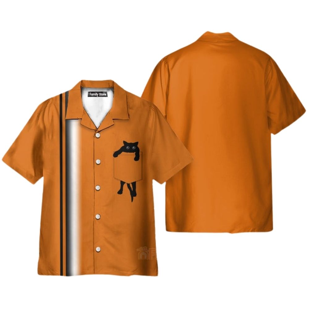Add a touch of feline charm to your wardrobe with this Black Cat Gradient Chest Pocket Hawaiian Shirt. Perfect for adding a playful twist to your casual look.