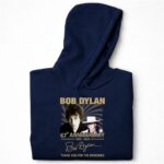 This design pays homage to Bob Dylan’s incredible journey from 1959 to 2026, encapsulating a rich legacy filled with unforgettable moments and melodies. The bold typography and vintage portrait invite wearers to reflect on the profound impact of his artistry, while the heartfelt message ‘THANK YOU FOR THE MEMORIES’ resonates deeply with fans who cherish the memories intertwined with his music.
