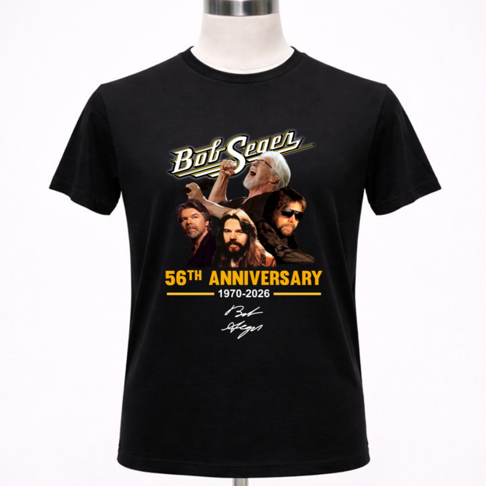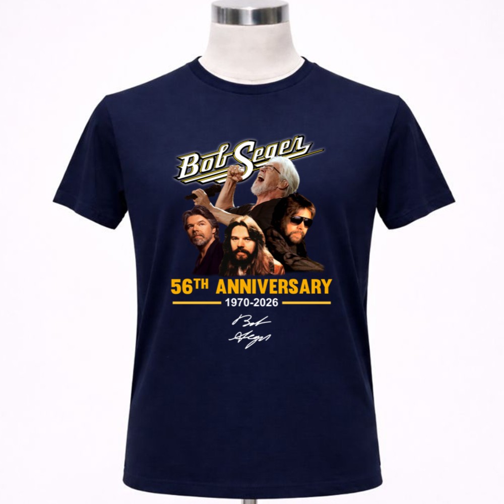 Bob Seger memorabilia, classic rock t-shirt, 56th anniversary tribute, music legend apparel, fan gear for Bob Seger, concert vibe clothing, iconic rock moments, timeless music celebration