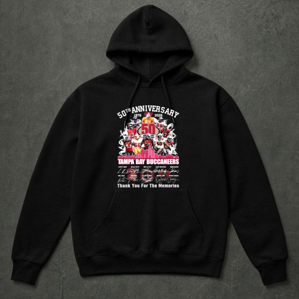 This vintage tribute captures the essence of the Tampa Bay Buccaneers’ 50-year journey, featuring the signatures of legends like Leroy Selmon, Derrick Brooks, and Mike Alstott. The bold graphic design serves as a canvas for honoring unforgettable moments in football history, inspiring pride and unity among fans who cherish their team’s legacy and the joy it brings.