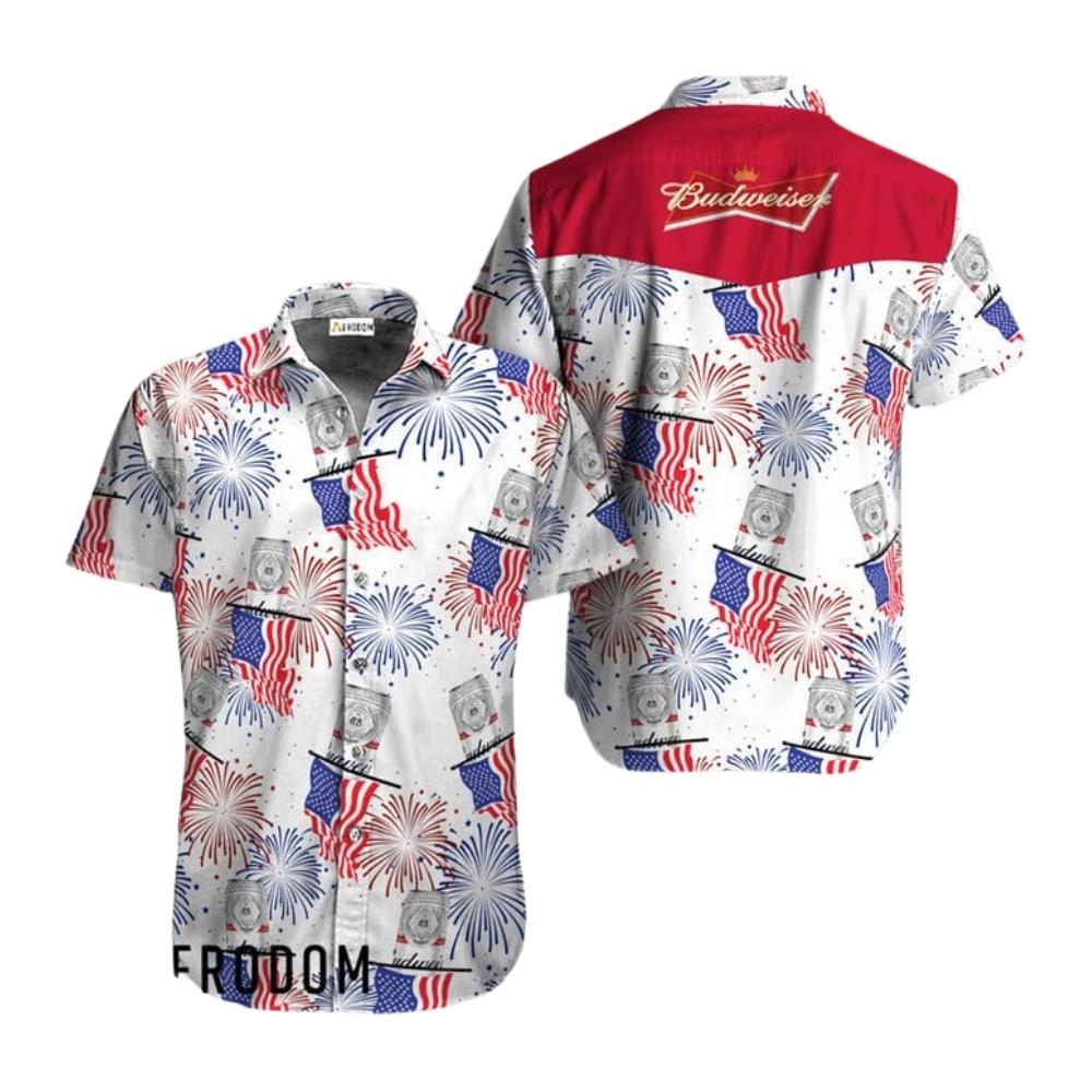 Budweiser American Flag Fireworks Hawaiian Shirt 5