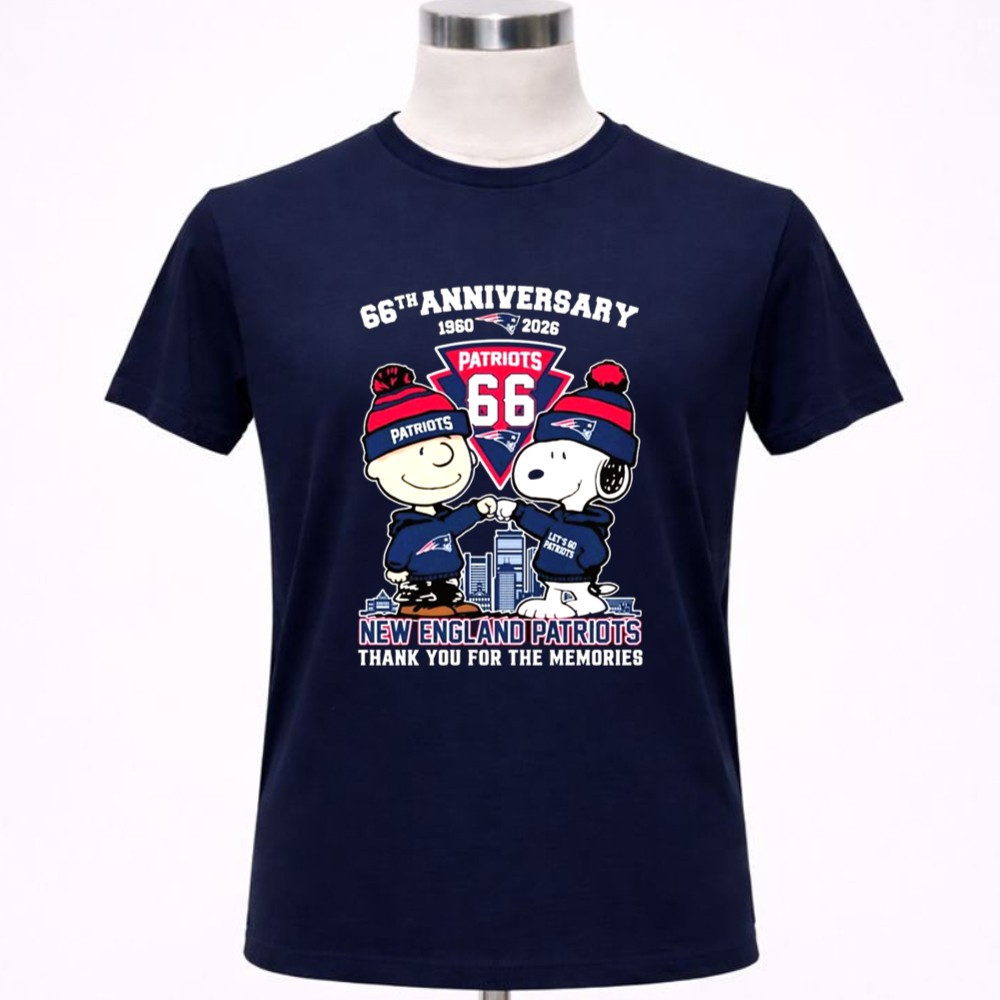 Charlie Browns And Snoopy Patriots 66th Anniversary 1960-2026 Thank You For The Memories Shirt