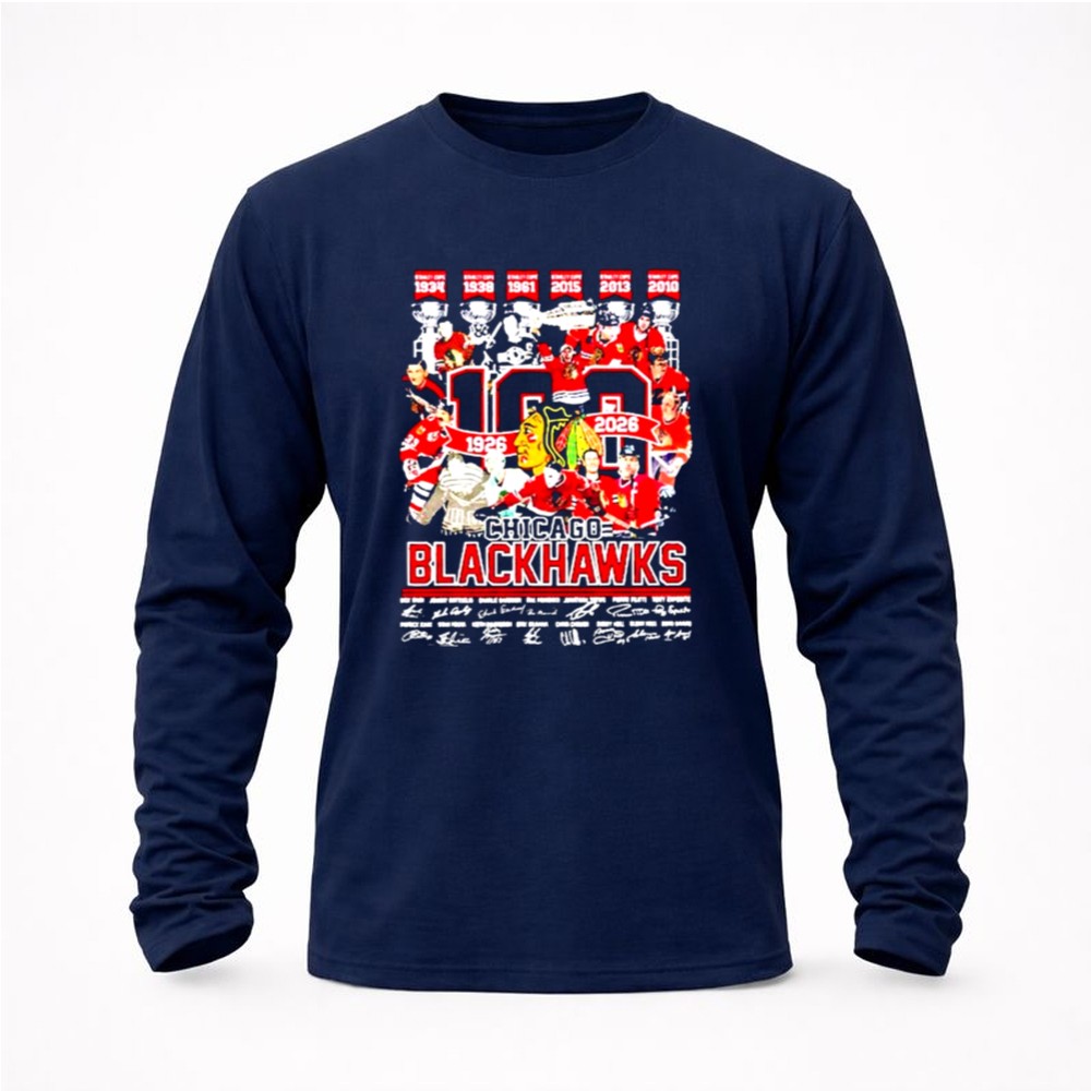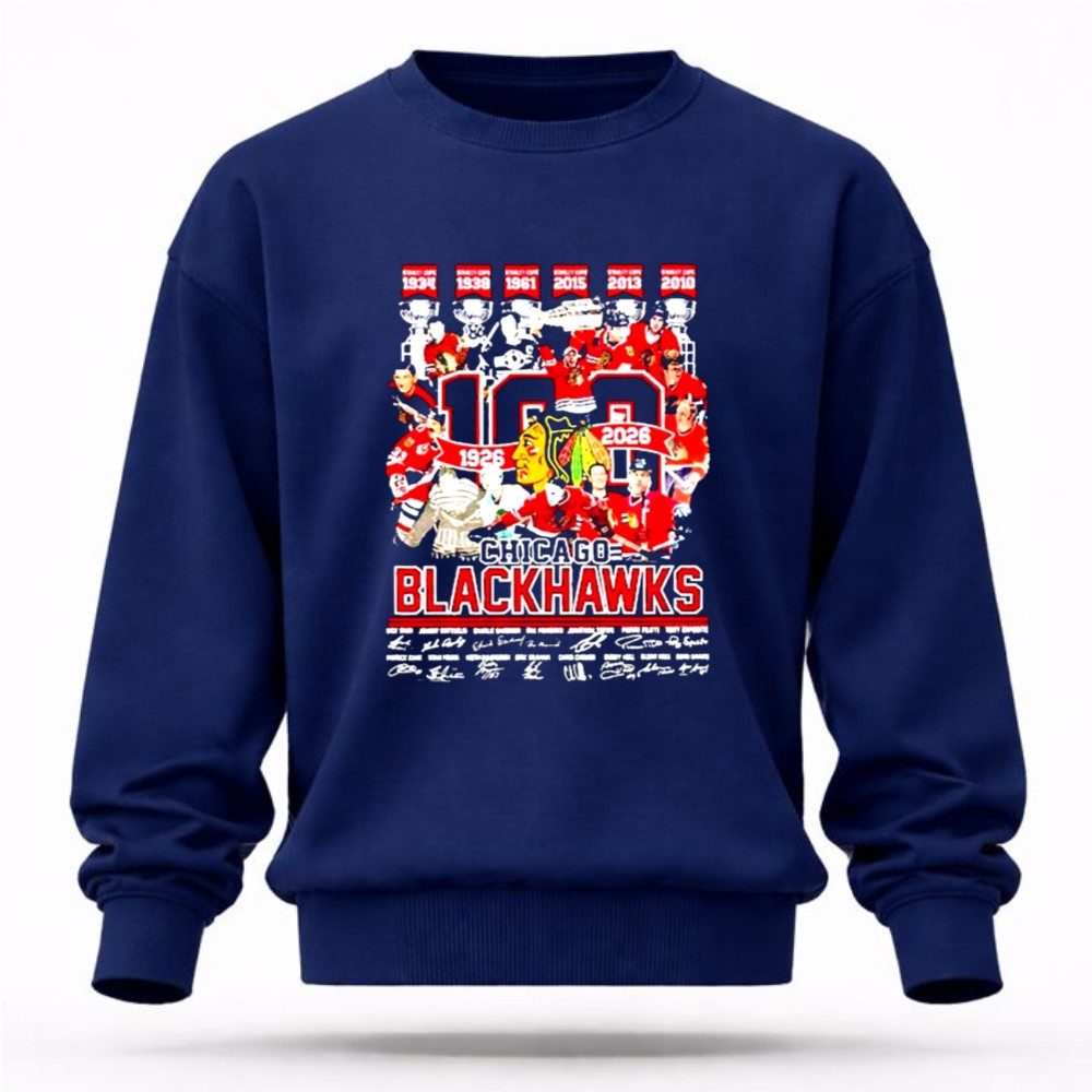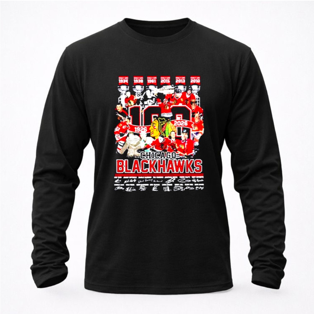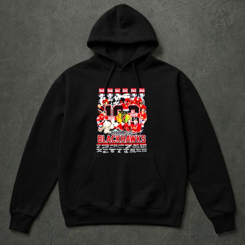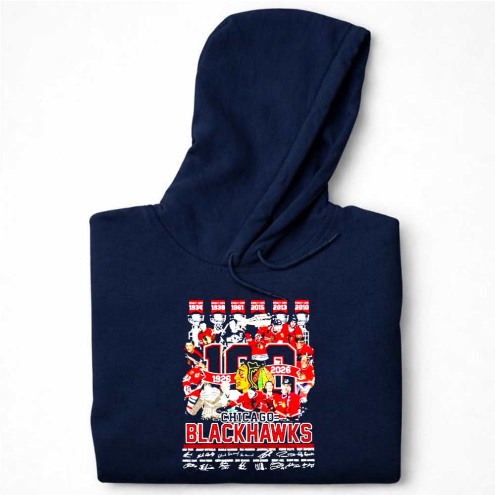 This design encapsulates the spirit of the Chicago Blackhawks’ 100-year journey, blending bold graphics with heartfelt tributes to iconic players. Each signature represents not just a name, but a cherished memory, inviting fans to unite in their love for the game and the team’s rich heritage. It’s a celebration of hockey excellence that resonates deeply with every supporter.
