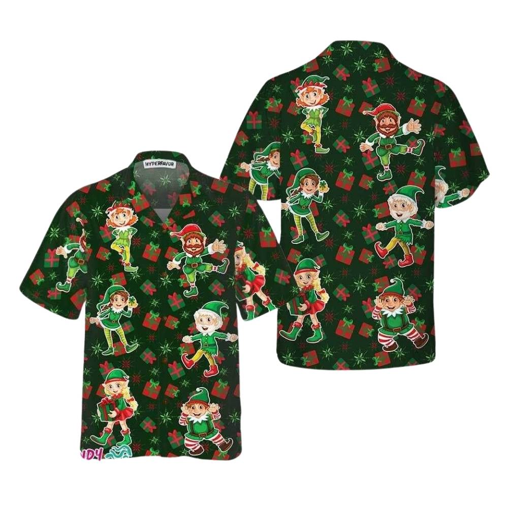 Get into the holiday spirit with this festive Christmas Elf Party Hawaiian Shirt! Perfect for adding a touch of fun to your seasonal wardrobe.