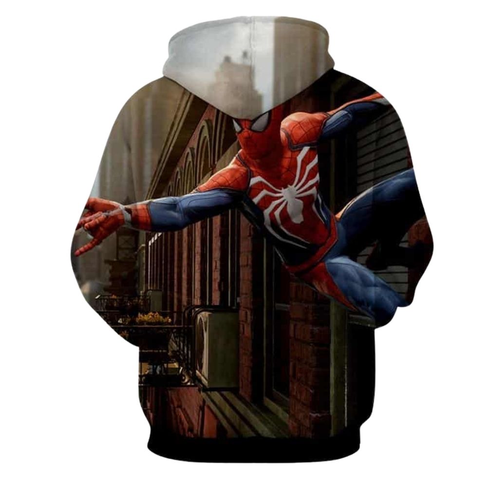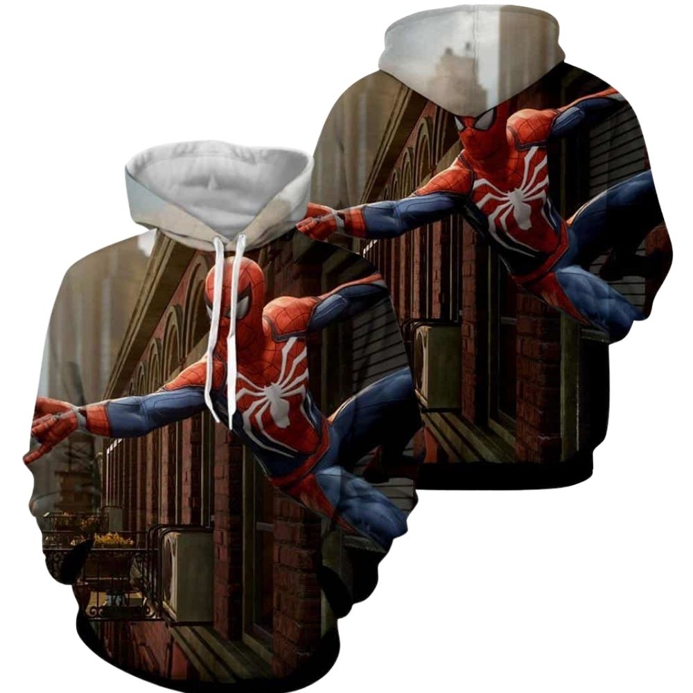 Get ready to swing into action with this Spider-Man wall-clinging hoodie! Featuring an all-over print design, this hoodie is perfect for any Marvel fan looking to showcase their favorite superhero in style. Stand out from the crowd and embrace your inner web-slinger with this cool and comfortable hoodie.