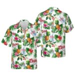Get ready for summer vibes with this Pineapple Floral Hawaiian Shirt featuring a unique flower and leaf pattern. Perfect for standing out at any beach or pool party!