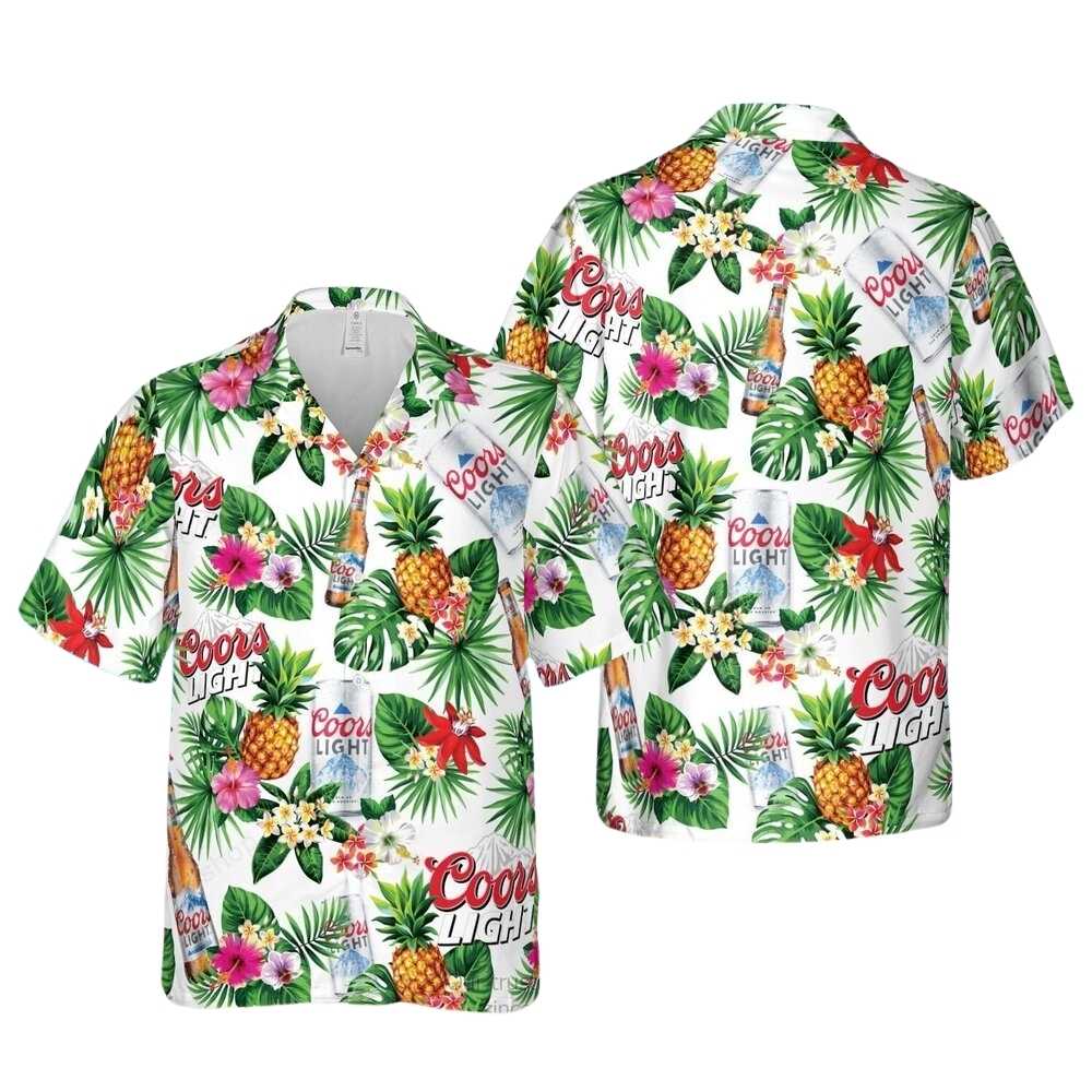 Coors Light Beer Pineapple Floral Flower Leaf Pattern Hawaiian Shirt
