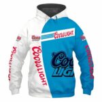 Show off your love for Coors Light with this stylish blue and white all-over print hoodie. Stay warm and cozy while repping your favorite beer brand in style. Perfect for casual outings or lounging at home.