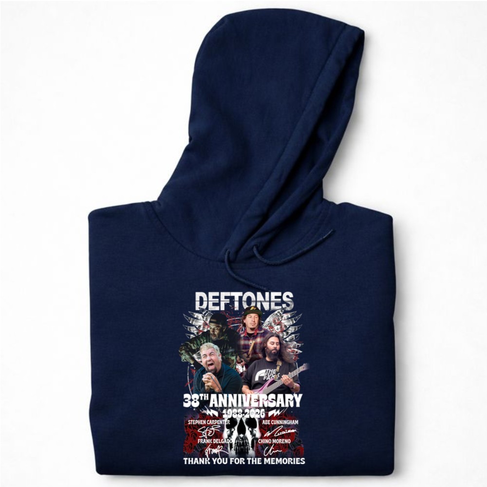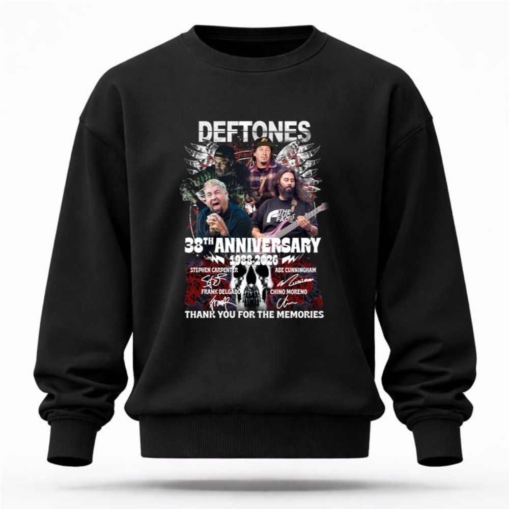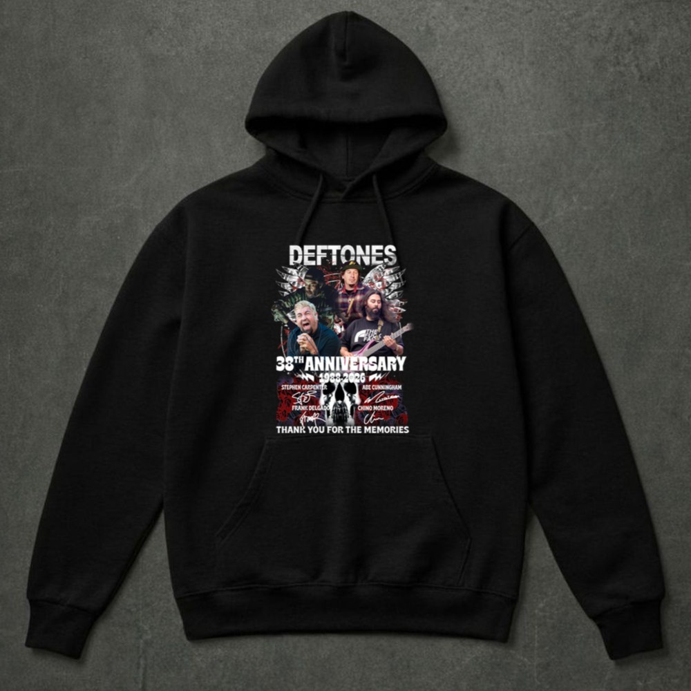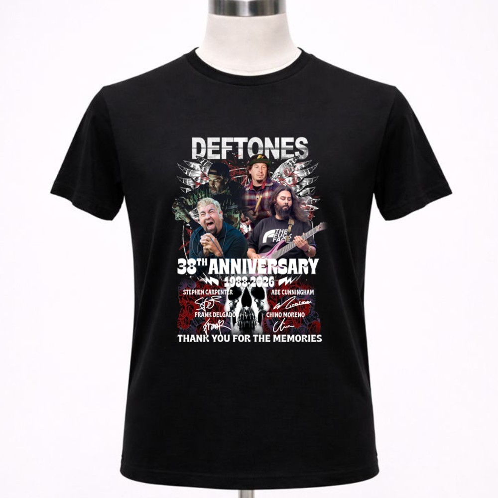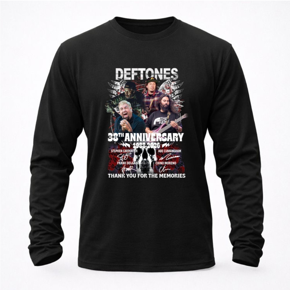 This design commemorates the Deftones’ remarkable 38-year journey, blending celebratory tribute and bold graphic art. It reflects the deep connection between the band and its devoted fans, inviting wearers to cherish the memories and iconic music moments that have defined a generation. Each detail serves as a reminder of the emotional resonance of their music.