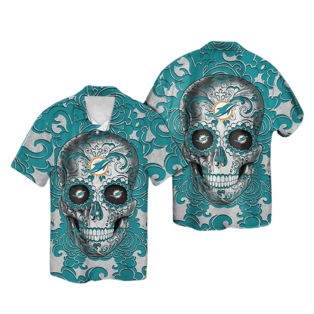 Dolphins Sugarskull Floral Hawaiian Shirt 5