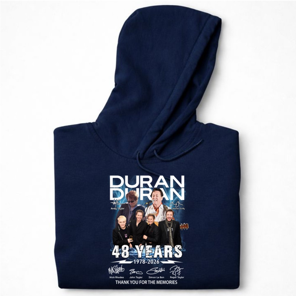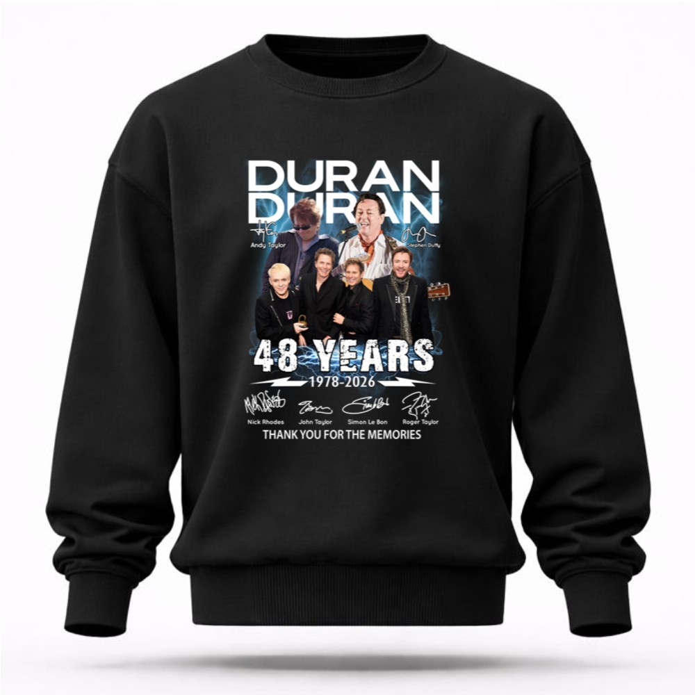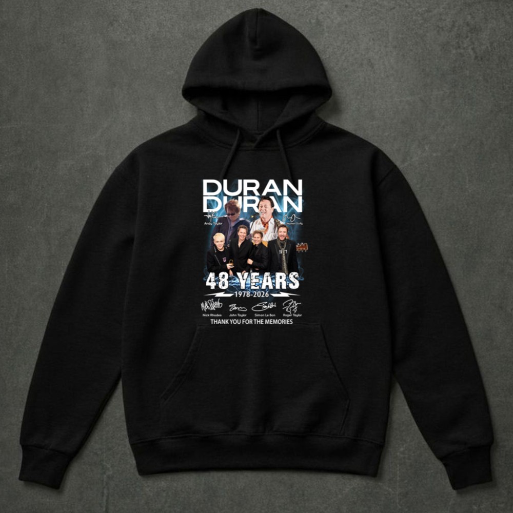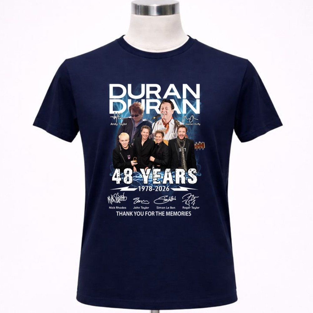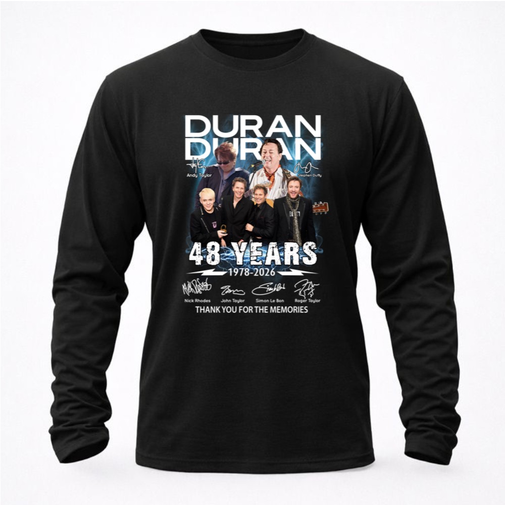 This design captures the essence of Duran Duran’s legacy, intertwining bold graphics with the signatures of its legendary members. It invites fans to reflect on the unforgettable moments and melodies that have shaped a generation, celebrating the band’s profound impact on music history with a heartfelt ‘thank you for the memories.’