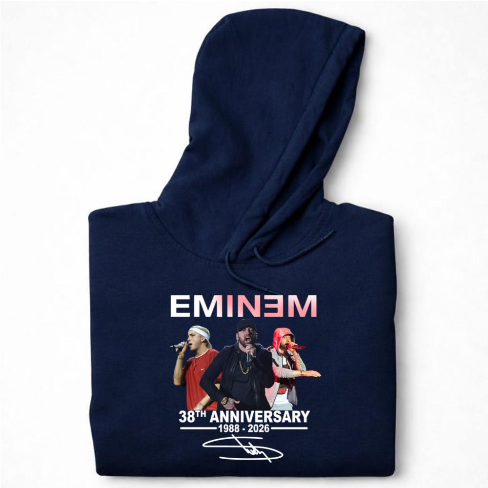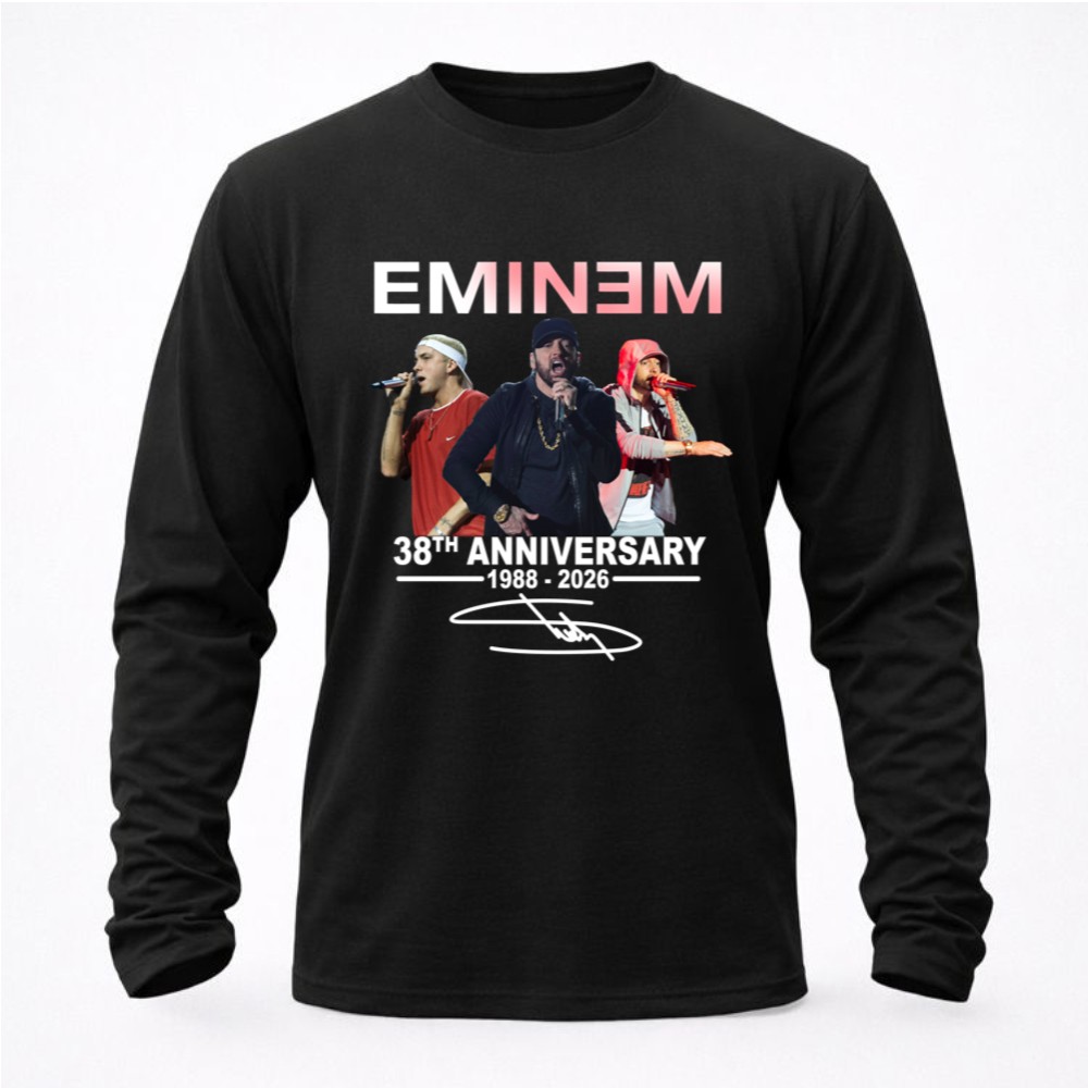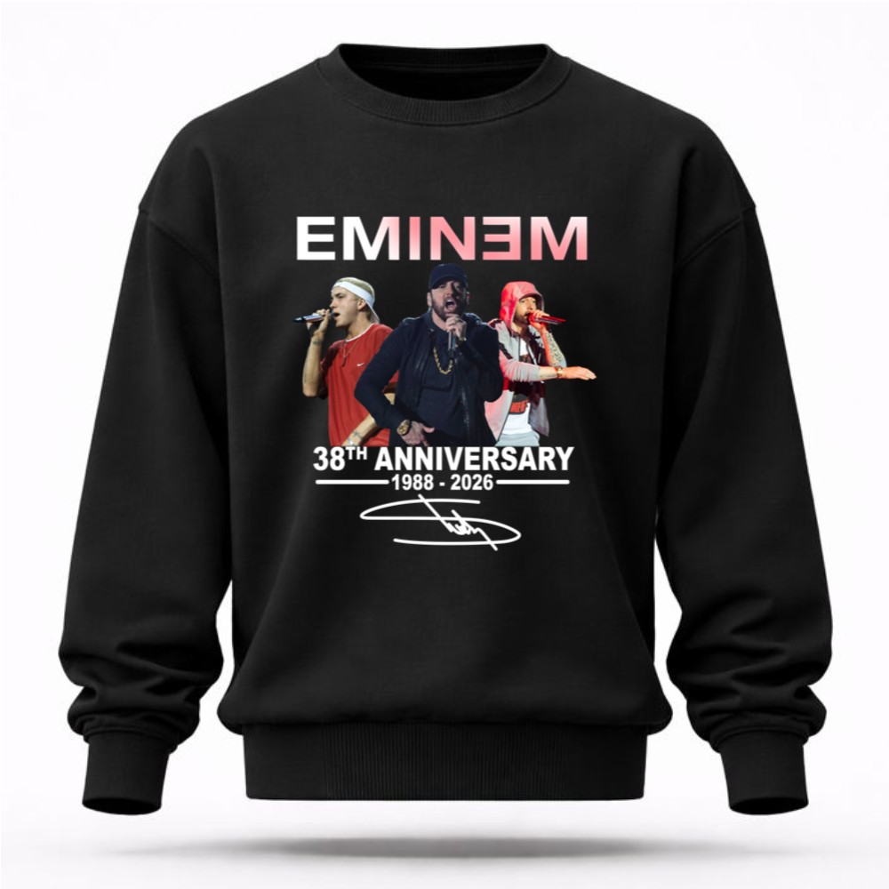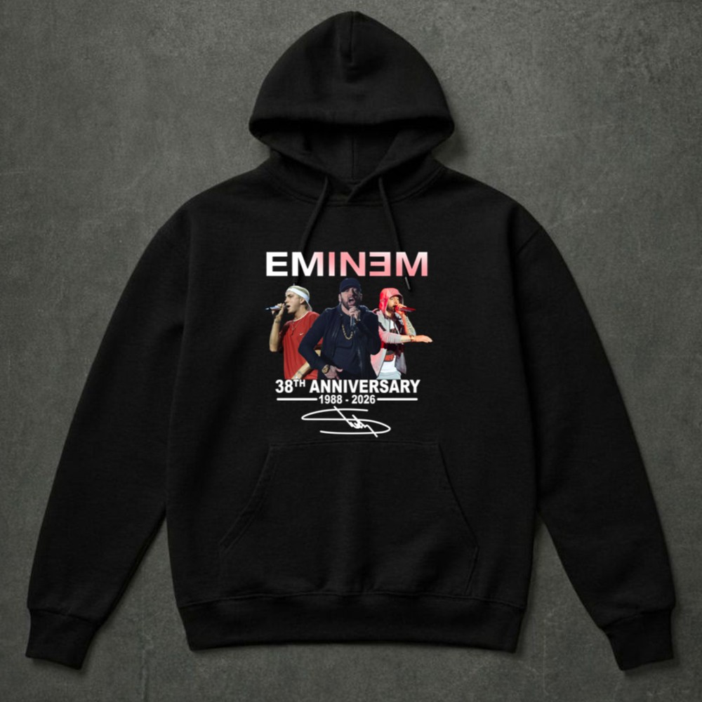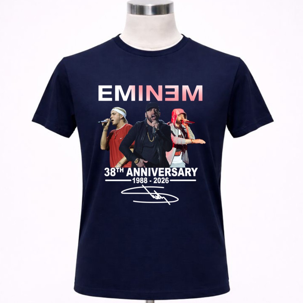 This design honors Eminem’s remarkable journey from 1988 to 2026, encapsulating the spirit of his performances. The celebratory tribute, combined with urban streetwear aesthetics, creates a piece that resonates deeply with fans, embodying gratitude for the memories he’s created through his music. It’s a visual expression of love and appreciation for a cultural icon.