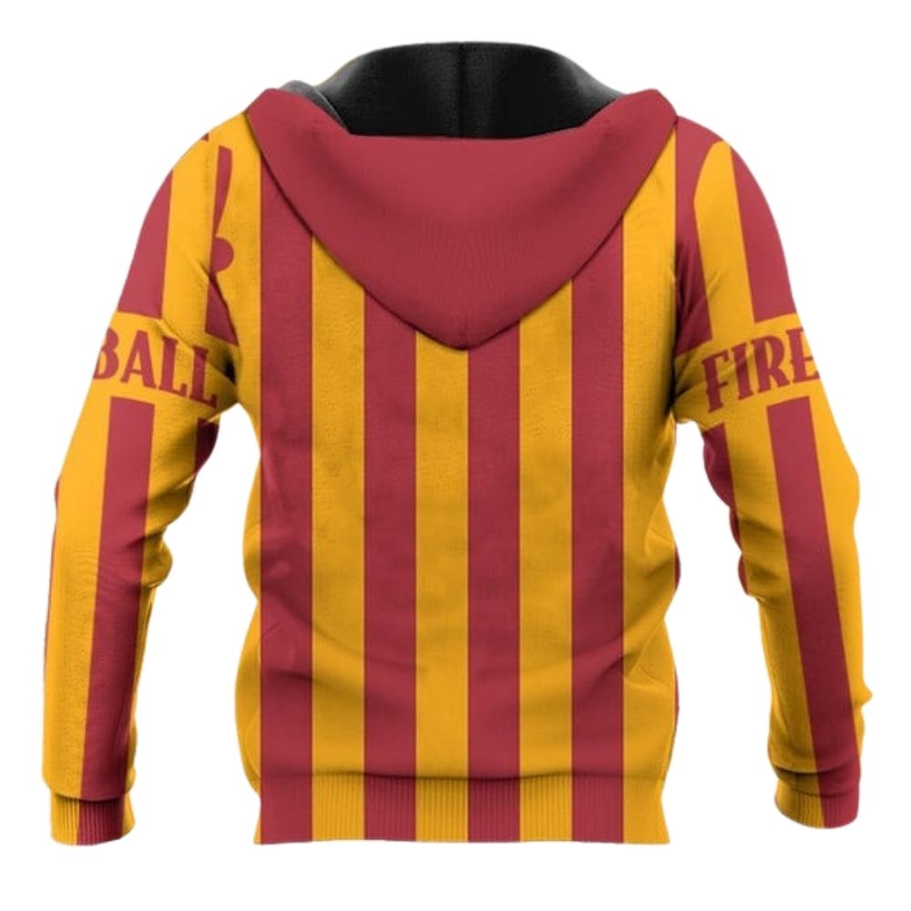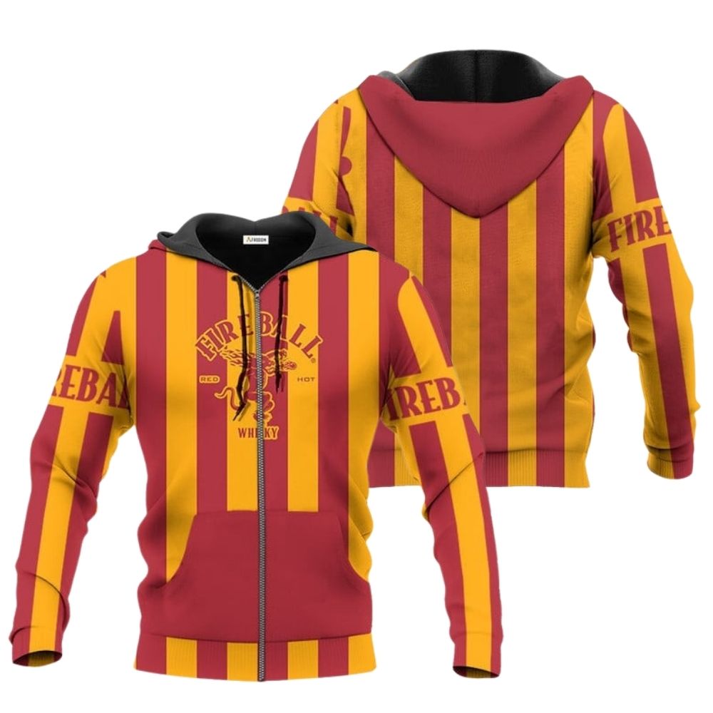 Get ready to turn heads with this Fireball Whisky Red Vintage Striped All Over Print Hoodie. Stay warm and stylish while showcasing your love for this iconic brand. Perfect for any casual outing or cozy night in.