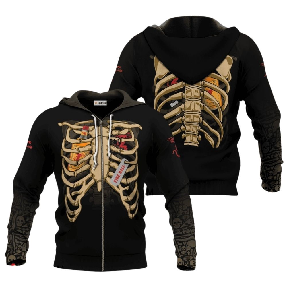 Fireball Whisky Skeleton Ribcage All Over Print Hoodie