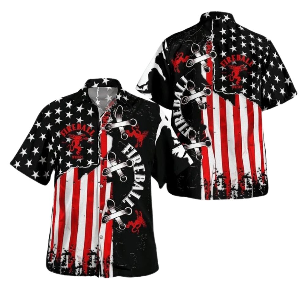 Fireball With Flag Americcan For 4Th Of July Hawaiian Shirt