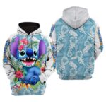 Flowers Stitch Disney Cartoon Graphic All Over Print Hoodie