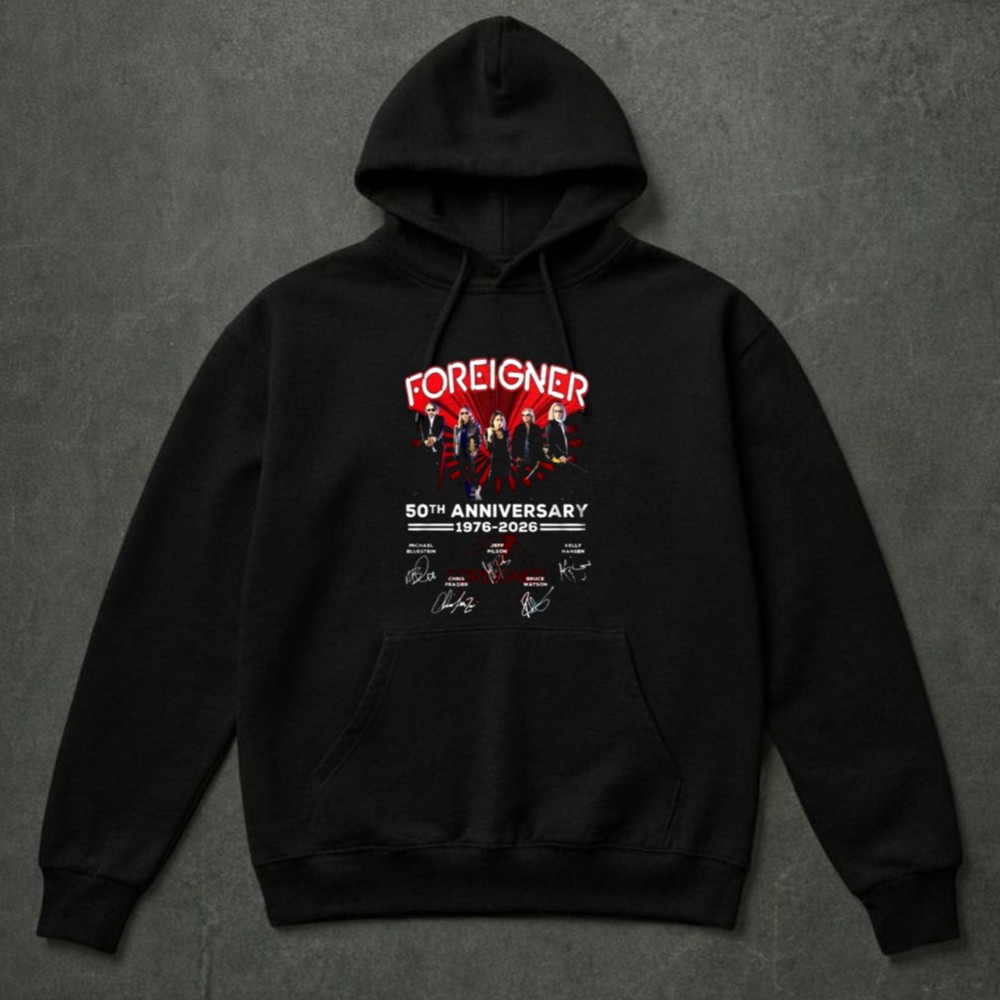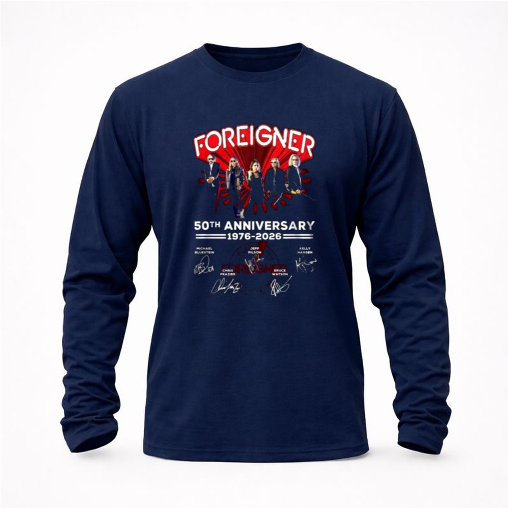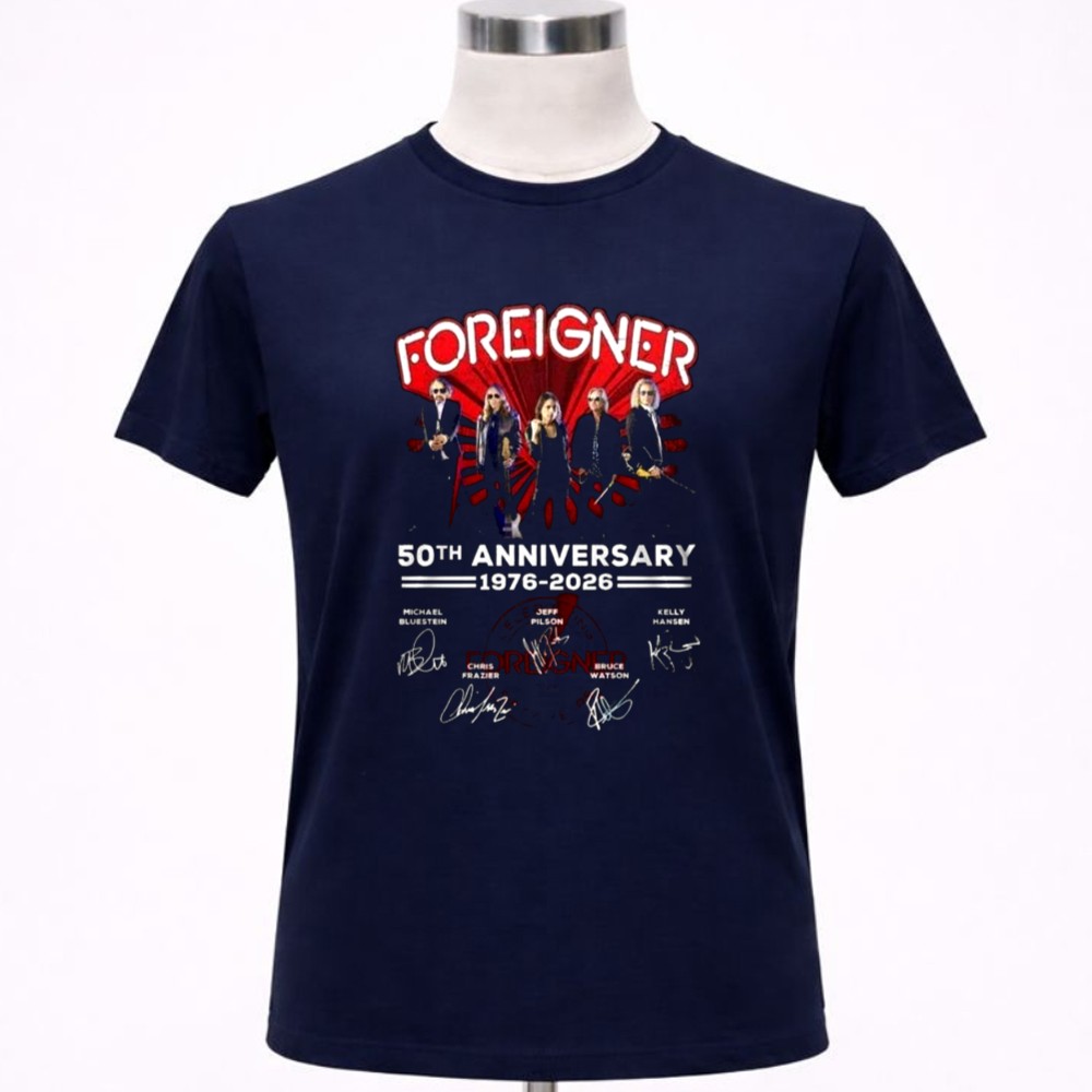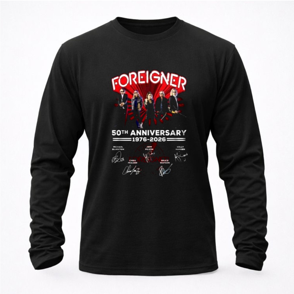 This design commemorates the 50th anniversary of Foreigner, capturing the essence of their unforgettable music and the joy they have brought to fans over the decades. The signatures of Michael Bluestein, Jeff Pilson, Kelly Hansen, Chris Frazier, and Bruce Watson beautifully symbolize the band’s enduring legacy and the impact they’ve made on countless hearts. Wearing this tribute is a way to honor the significant milestones of a beloved rock band.