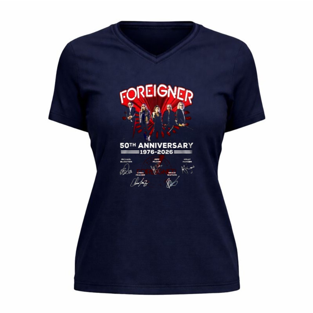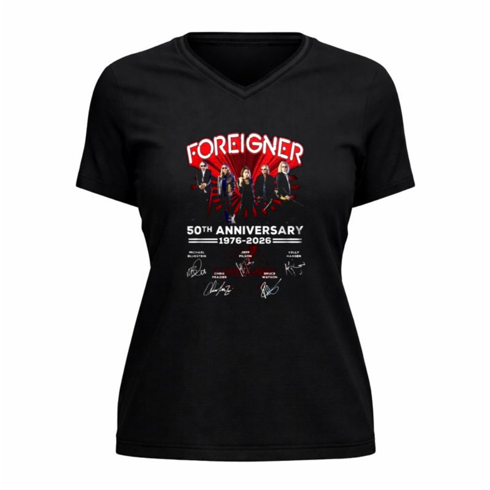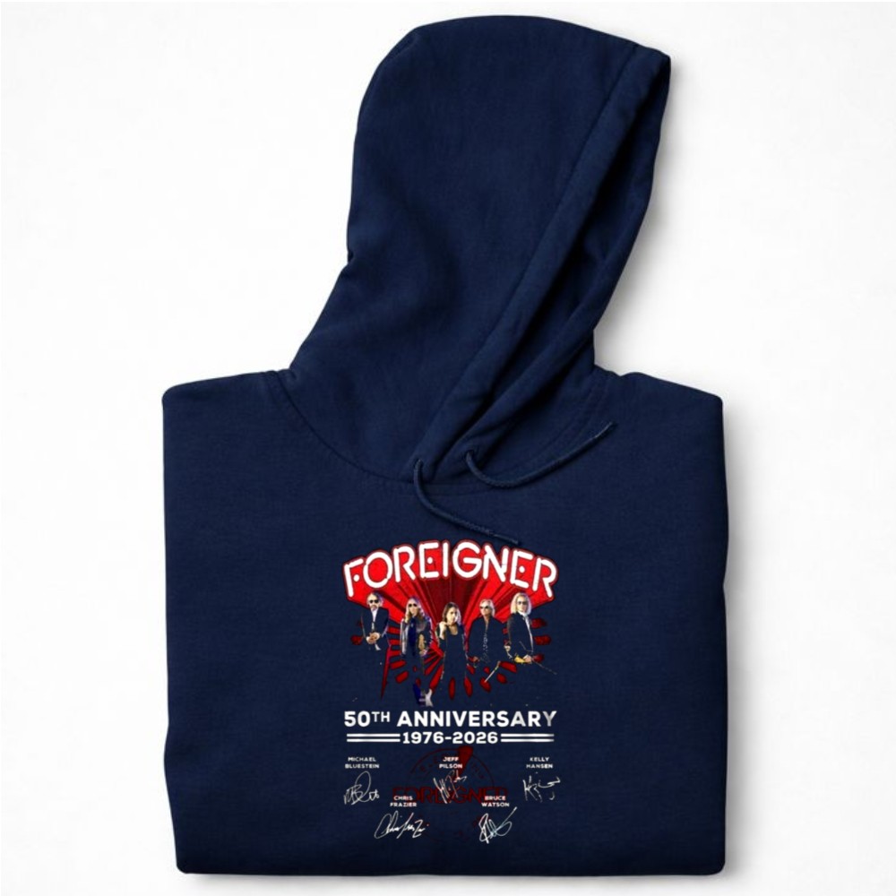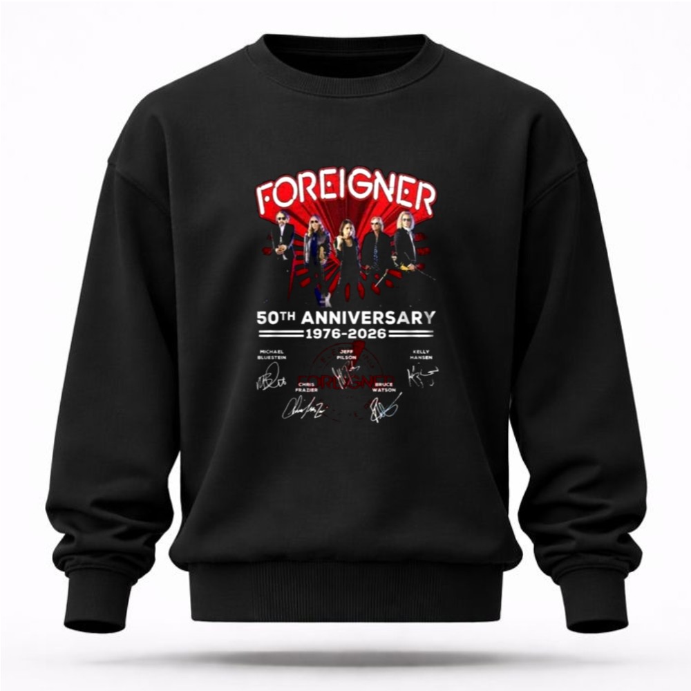 This design commemorates the 50th anniversary of Foreigner, capturing the essence of their unforgettable music and the joy they have brought to fans over the decades. The signatures of Michael Bluestein, Jeff Pilson, Kelly Hansen, Chris Frazier, and Bruce Watson beautifully symbolize the band’s enduring legacy and the impact they’ve made on countless hearts. Wearing this tribute is a way to honor the significant milestones of a beloved rock band.