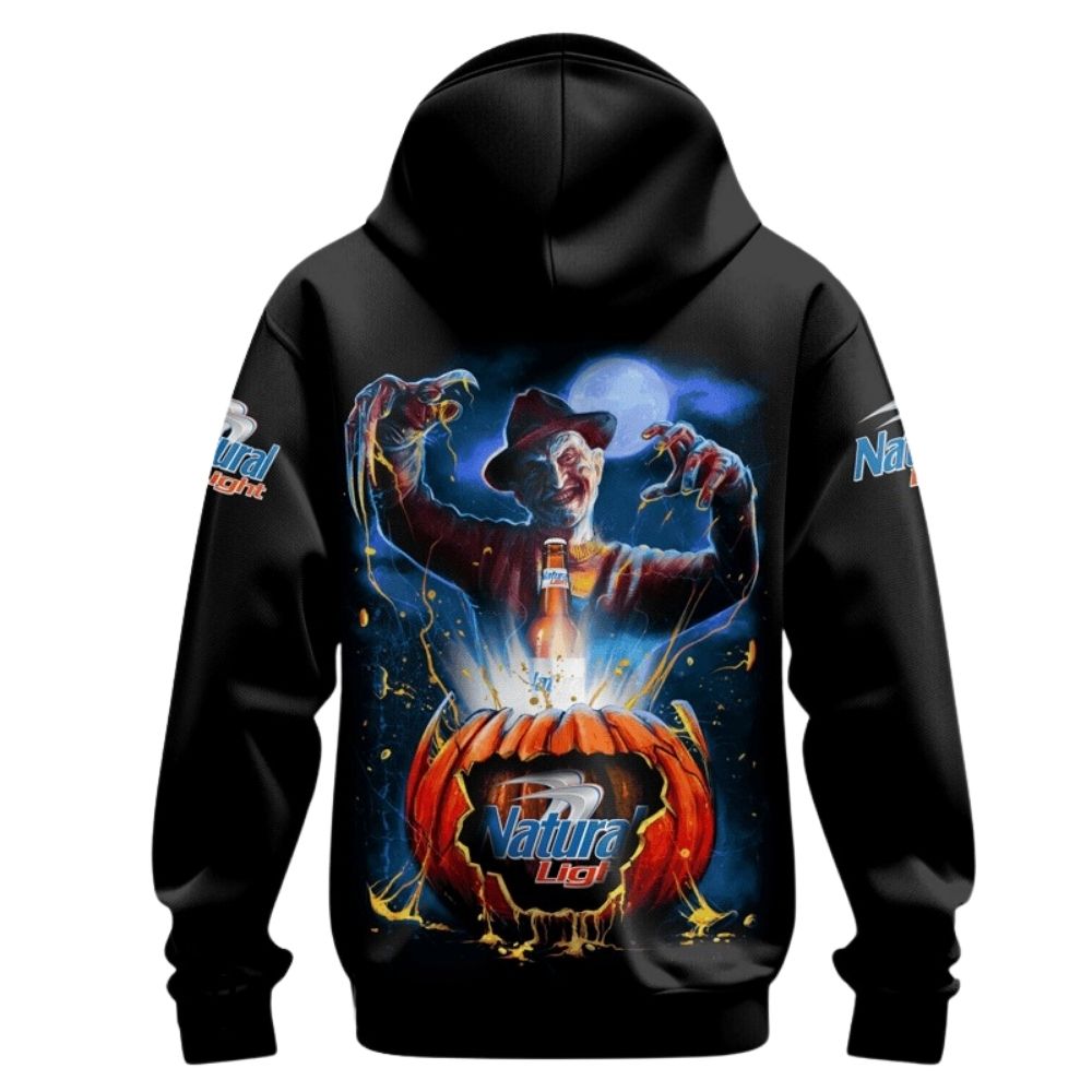 Get into the Halloween spirit with this Freddy Krueger Natural Light All Over Print Hoodie. Perfect for adding a spooky touch to your wardrobe.