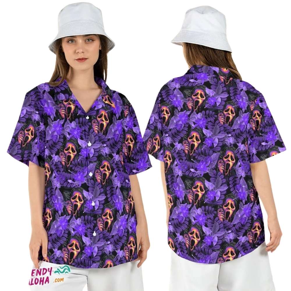 Get into the Halloween spirit with our Ghostface Scream Ghost Scary Floral Hawaiian Shirt. Perfect for adding a spooky twist to your wardrobe this season.