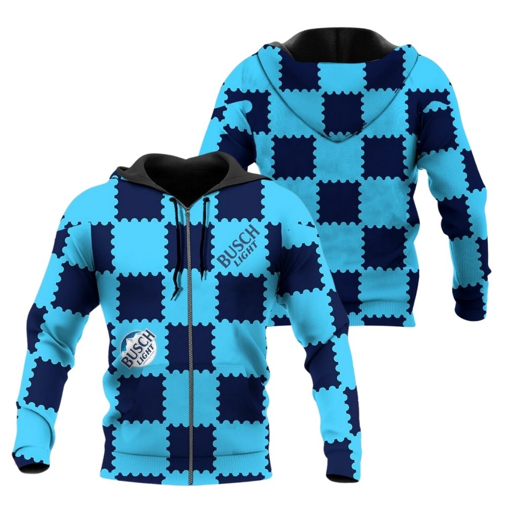 Shop the Gorgeous Gingham Busch Light All Over Print Hoodie for a trendy and stylish addition to your wardrobe. Stay warm and stand out in this unique and eye-catching design. Perfect for casual outings or lounging at home. Get yours today!