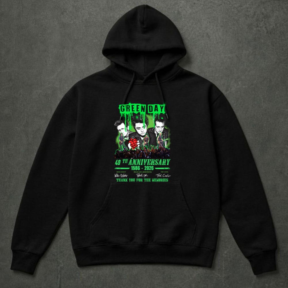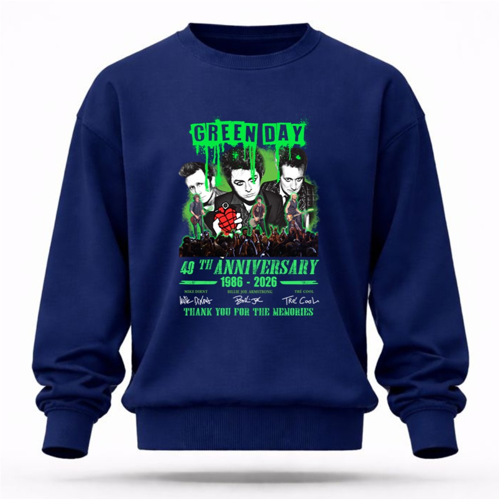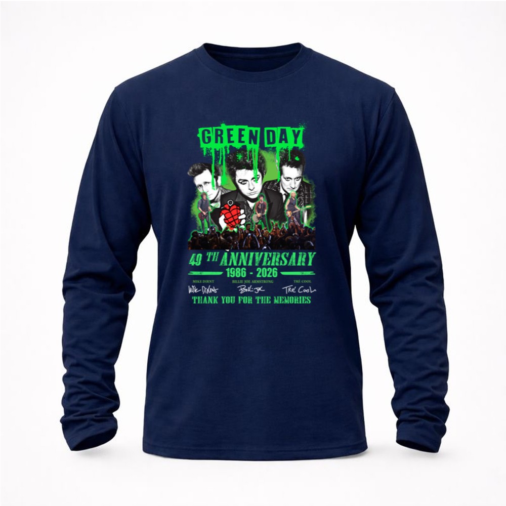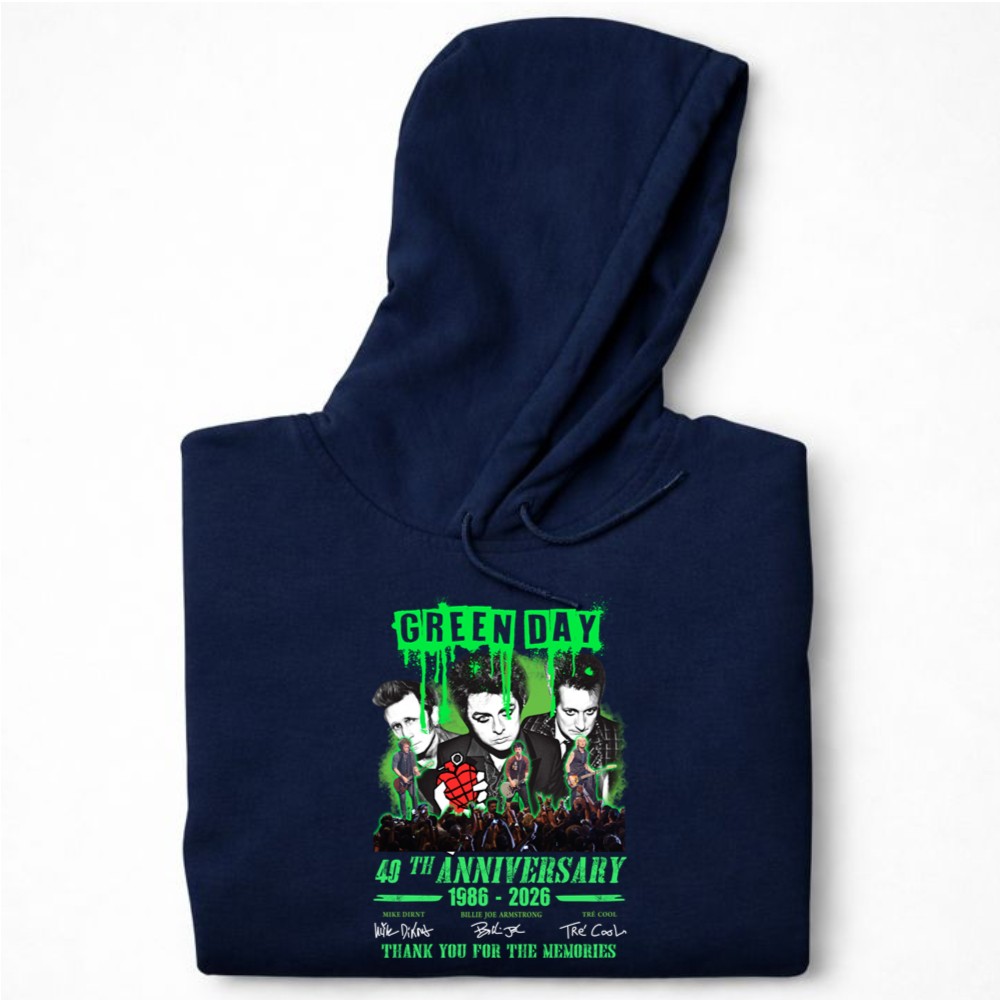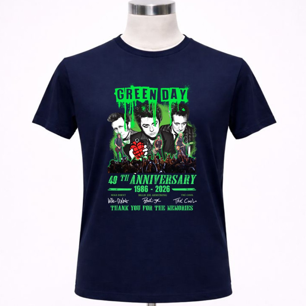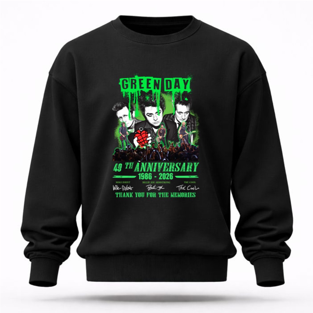 This design encapsulates the essence of Green Day’s journey through music, memories, and unity. With vibrant graphics and the signatures of the legendary trio, it honors the band’s profound influence on punk rock over the decades, inviting fans to celebrate their shared passion and nostalgia.