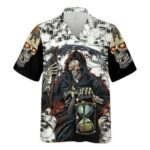 Get into the spooky spirit with our Grim Reaper With Time Halloween Hawaiian Shirt. Perfect for adding a touch of Halloween fun to your wardrobe. Shop now!