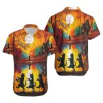 Get into the spooky spirit with our Halloween Cat Themed Hawaiian Shirt. Perfect for adding a feline touch to your festive wardrobe.
