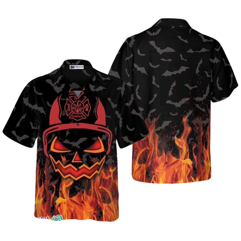 Stand out this Halloween with our unique firefighter Hawaiian shirt. Perfect for adding a fun twist to your costume or everyday wear. Get yours now!