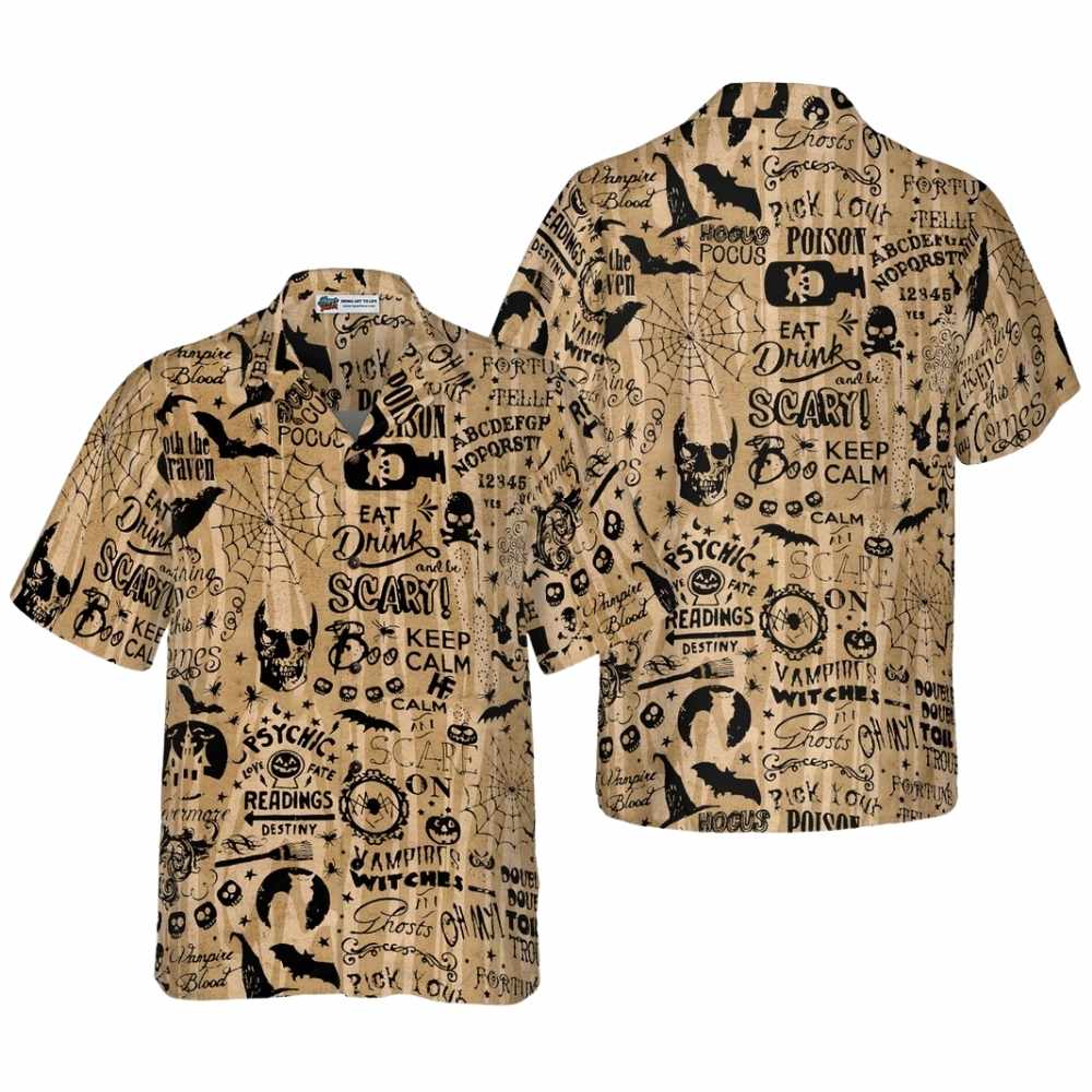 Get into the spooky spirit with our Halloween Ouija Pattern Hawaiian Shirt. Perfect for adding a touch of mystery to your wardrobe this season.