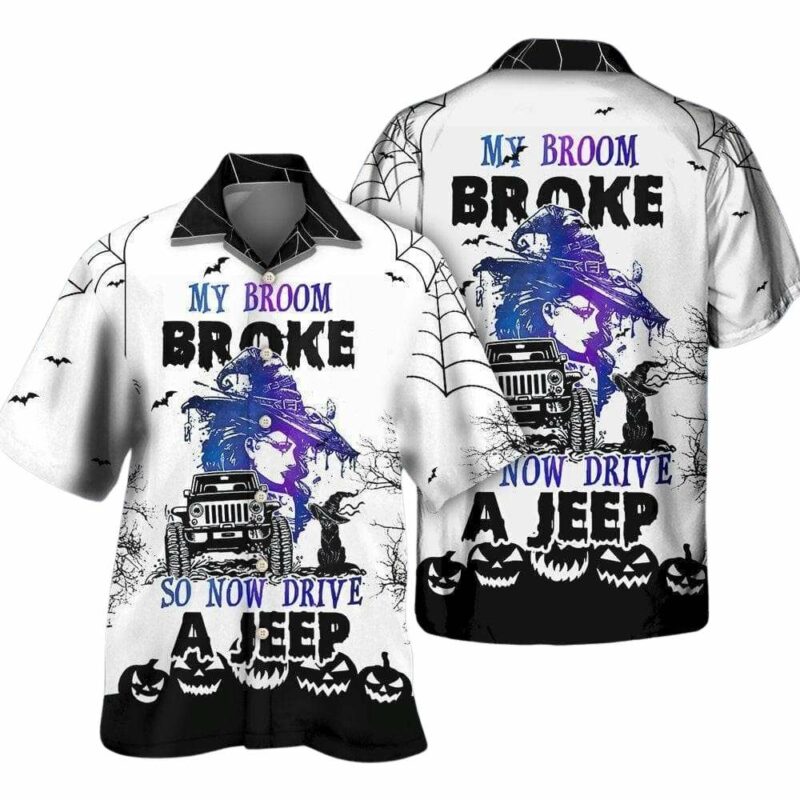 Get into the spooky spirit with this Halloween Witch My Broom Broke Hawaiian Shirt! Perfect for adding a touch of fun to your Halloween wardrobe.