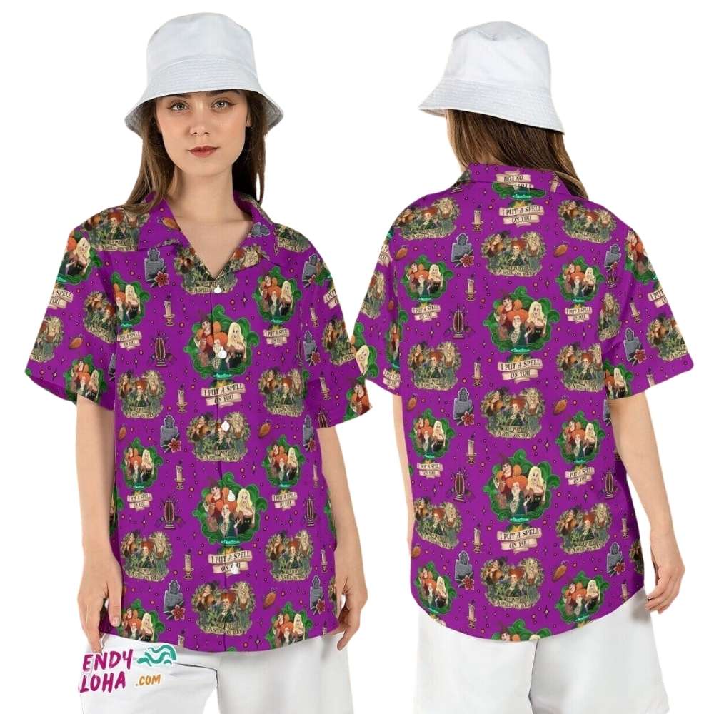 Get into the Halloween spirit with this Hocus Pocus Spell Sanderson Sisters Hawaiian Shirt! Perfect for adding a touch of magic to your wardrobe.