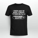 Elevate your style with our “I Threw Away My Moral Compass To Make 90K Year At Lockheed Martin” shirt. Stand out with this unique design while showcasing your bold personality. Shop now and make a statement!