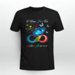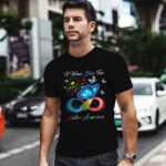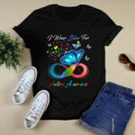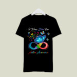 I Wear Blue For Autism Awareness Infinity Symbol Colorful Feather Puzzle Pieces Flying Butterflies Shirt