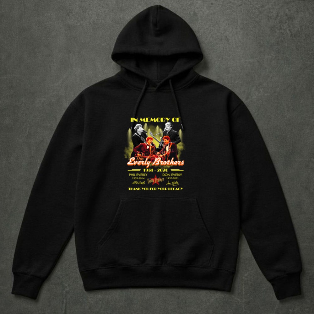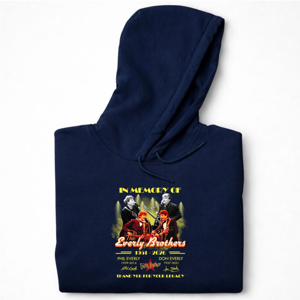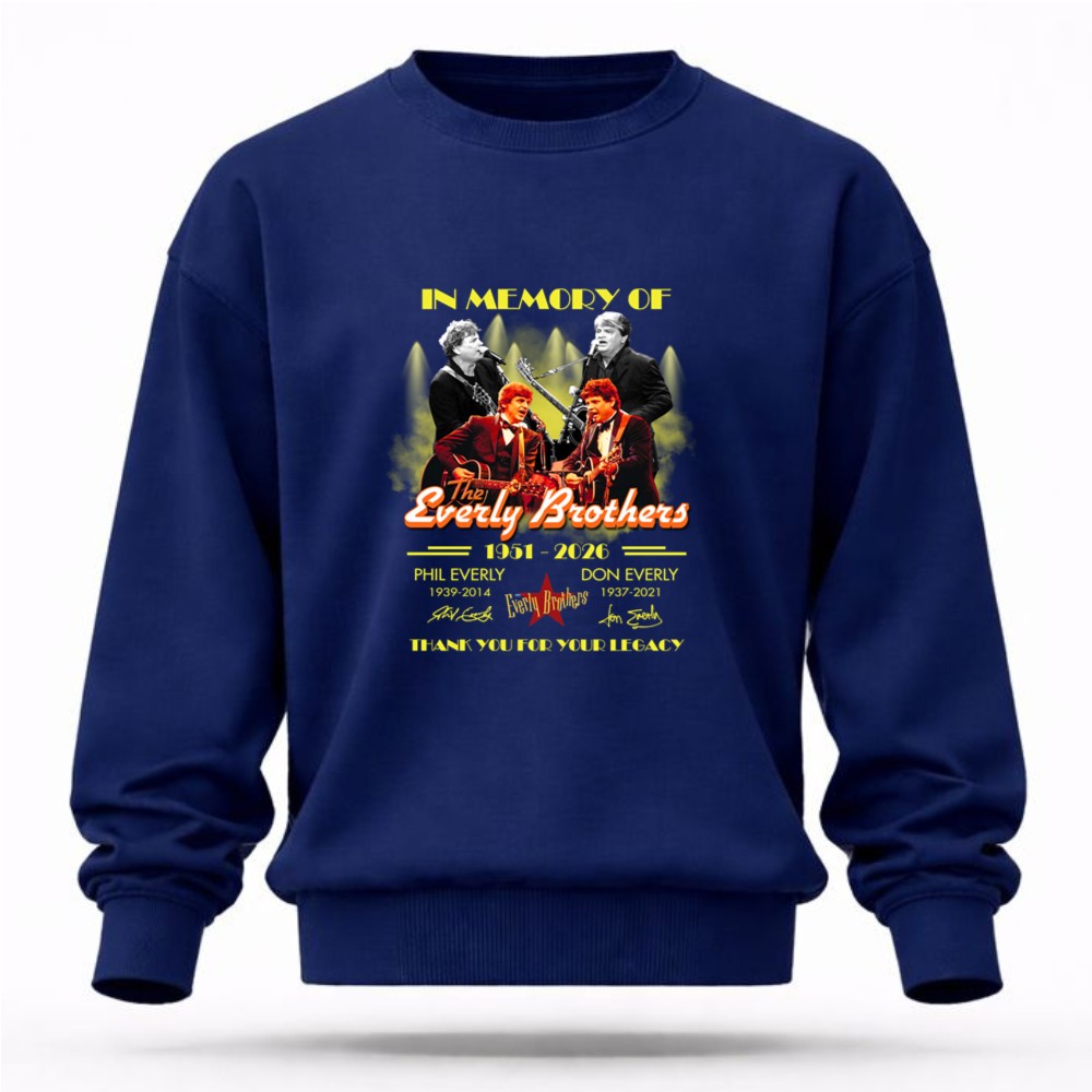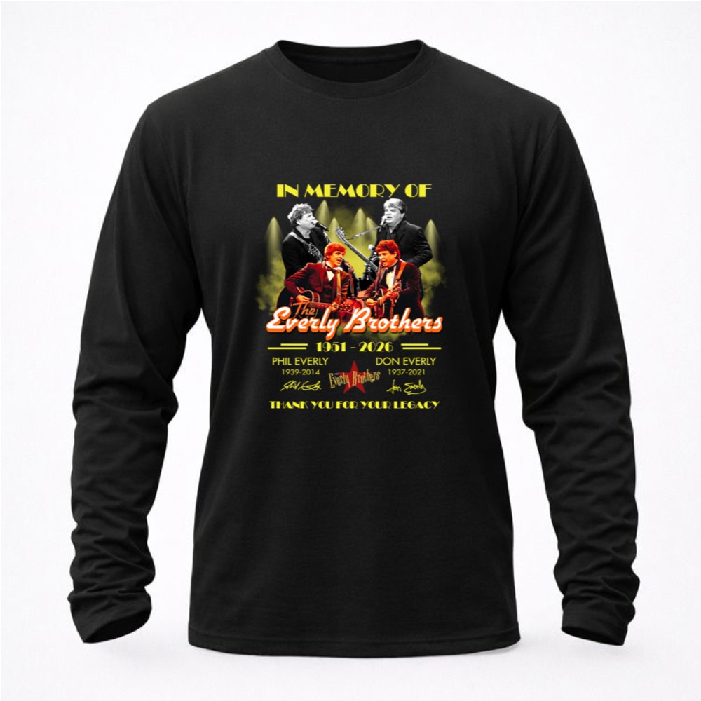 This design serves as a heartfelt homage to The Everly Brothers, encapsulating their extraordinary journey from 1951 to 2026. With bold colors and the essence of a vintage concert poster, it pays tribute to Phil and Don Everly’s enduring music legacy, while the message ‘THANK YOU FOR YOUR LEGACY’ resonates deeply with fans who cherish their contributions to the world of music.