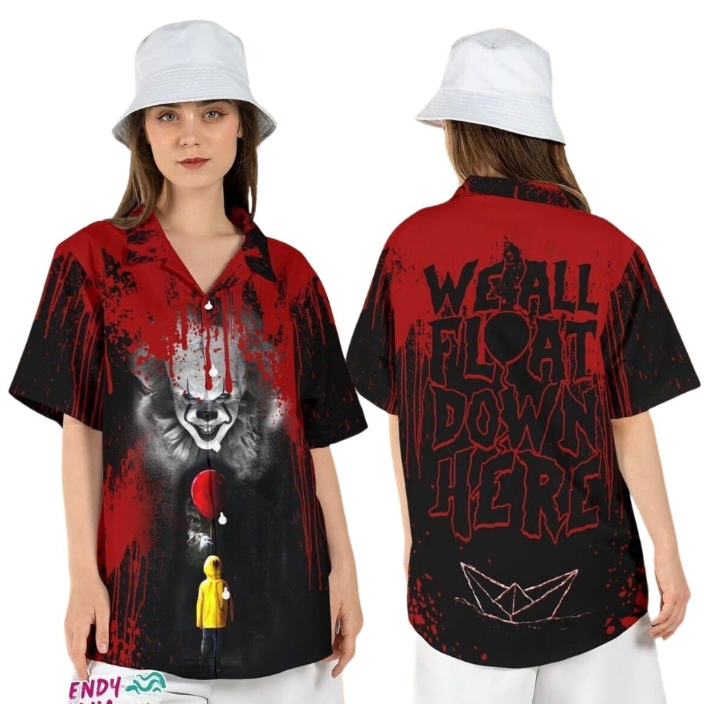 IT Movie Pennywise Clown We All Float Down Here Halloween Hawaiian Shirt