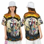 Get into the Halloween spirit with this Nightmare Before Christmas Town Hawaiian shirt featuring Jack and Sally. Perfect for adding a touch of spooky fun to your wardrobe.