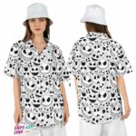 Get into the Halloween spirit with this Jack Skellington Nightmare Before Christmas Hawaiian shirt. Perfect for adding a spooky twist to your wardrobe.