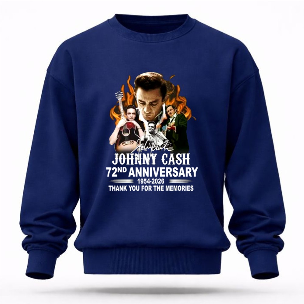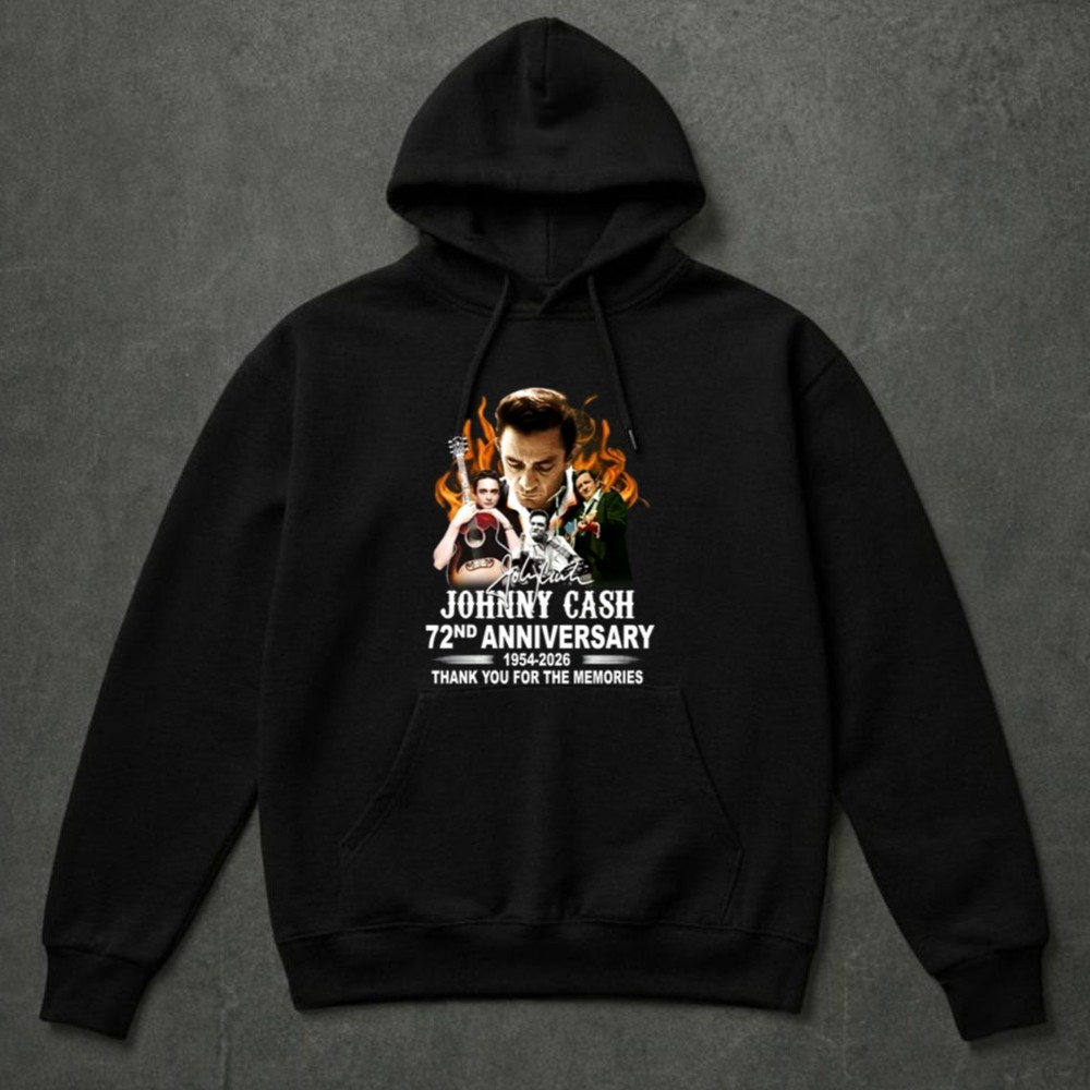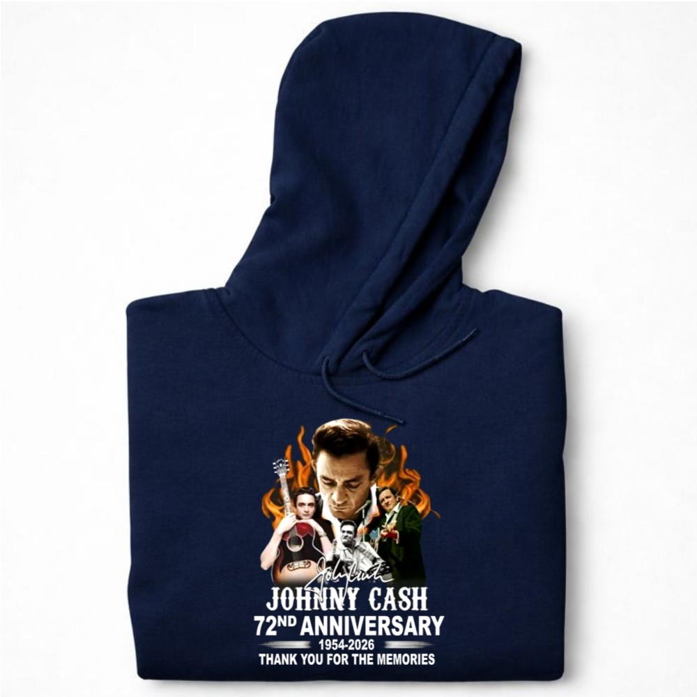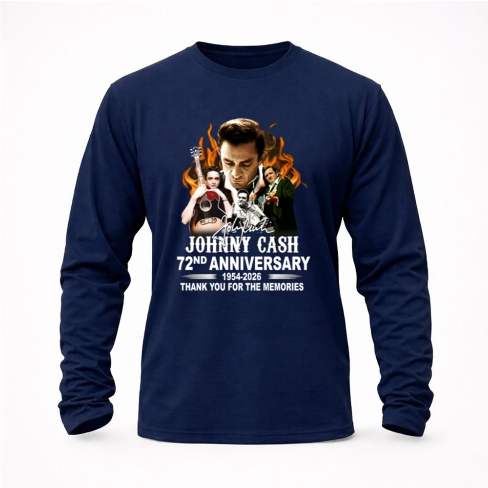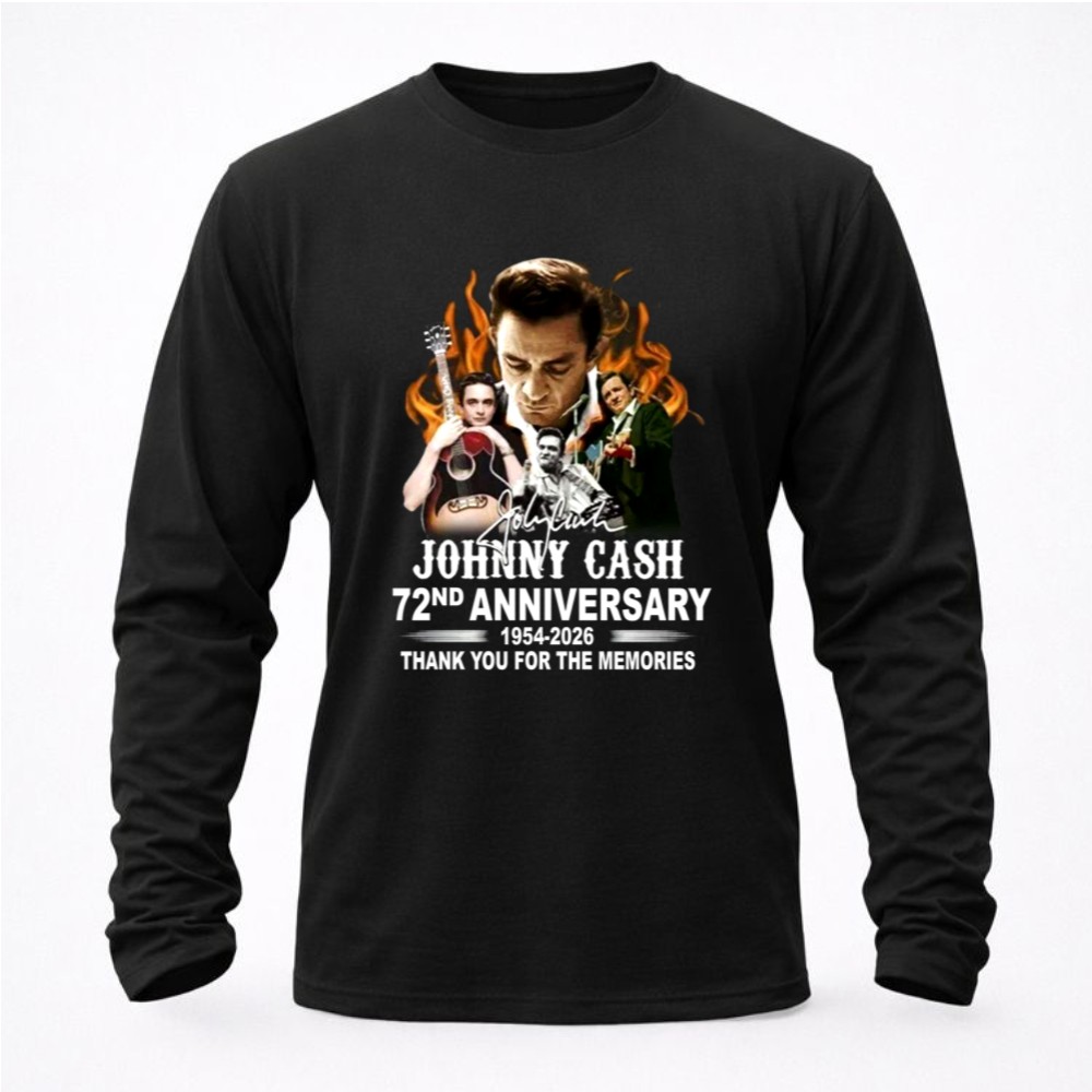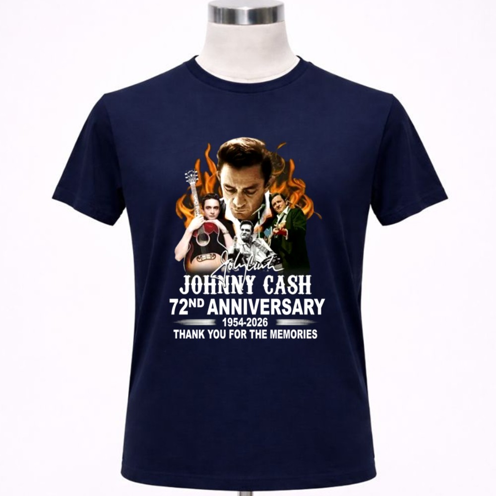 Johnny Cash tribute shirt, music legend t-shirt, country music memorabilia, anniversary celebration apparel, thank you for the memories, iconic musician tribute, 72nd anniversary gift, classic country music fashion