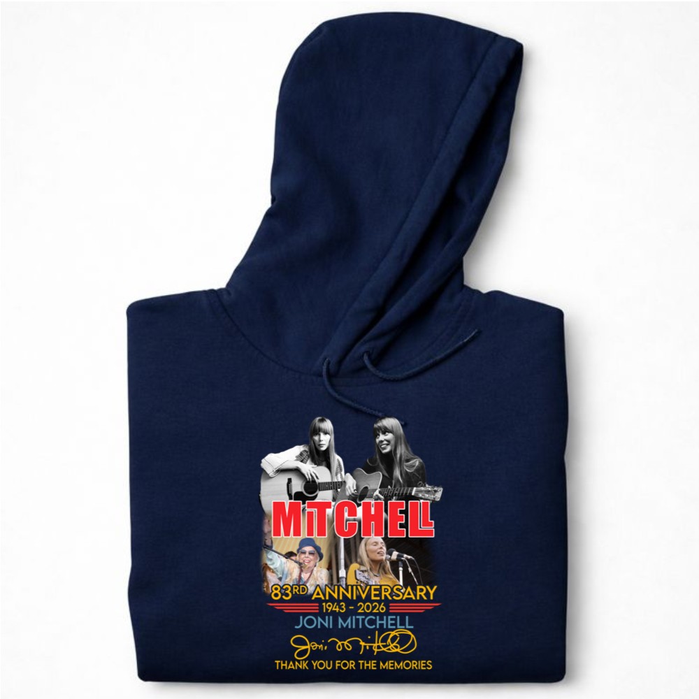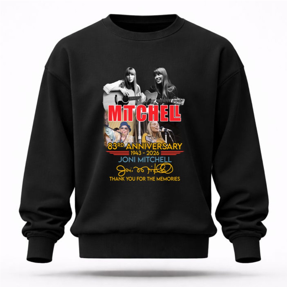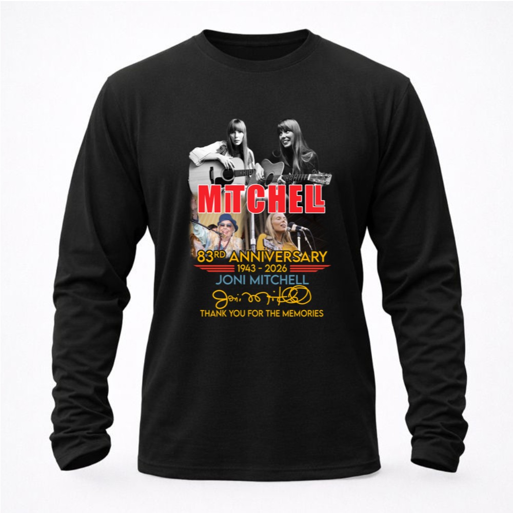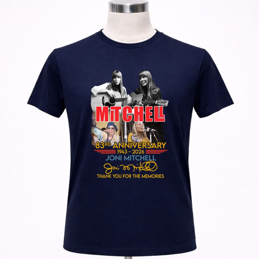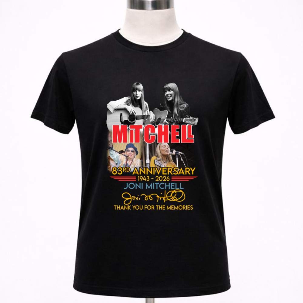 This design commemorates Joni Mitchell’s 83rd anniversary, inviting fans to reflect on her profound impact on music and culture. With iconic imagery and a vintage concert poster style, it evokes a sense of nostalgia, allowing us to celebrate the memories and artistry that have shaped generations of listeners. The words ‘Thank You For The Memories’ serve as a heartfelt reminder of her journey and the lasting connection she shares with her audience.