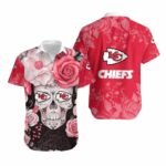 Add a touch of edgy style to your wardrobe with the Kansas City Skull Sugar Floral Hawaiian Shirt. Perfect for making a statement and standing out from the crowd.